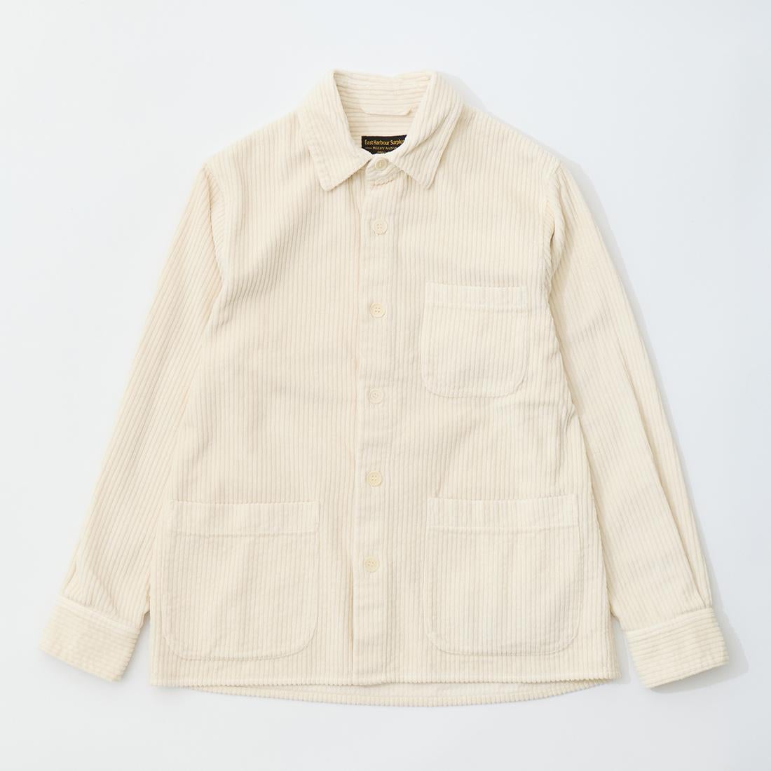 他の画像を見る ハドリーシャツジャケット コーデュロイ イタリア製 East Harbour Surplus (イーストハーバーサープラス) HADLEY SHIRT JACKET CORDUROY - OFF WHITE 販売価格 ¥ 46,200 税込 お気に入りに登録する