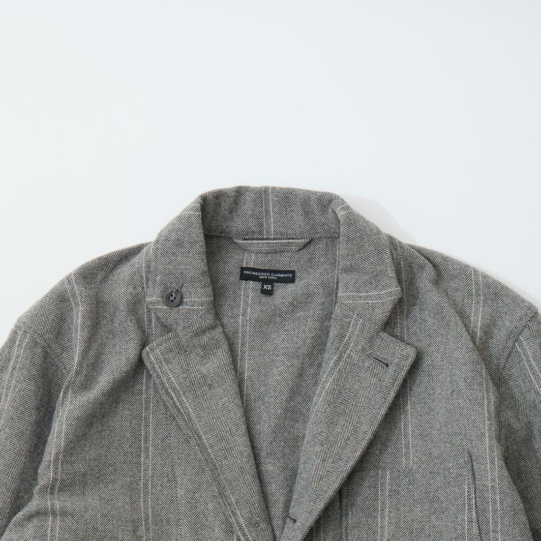 他の画像を見る 2025秋冬新作 RV132 ロイタージャケット ウールストライプ ヘリンボーン ENGINEERED GARMENTS (エンジニアドガーメンツ) LOITER JACKET WOOL STRIPED HB - LT GREY 販売価格 ¥ 58,300 税込 お気に入りに登録する