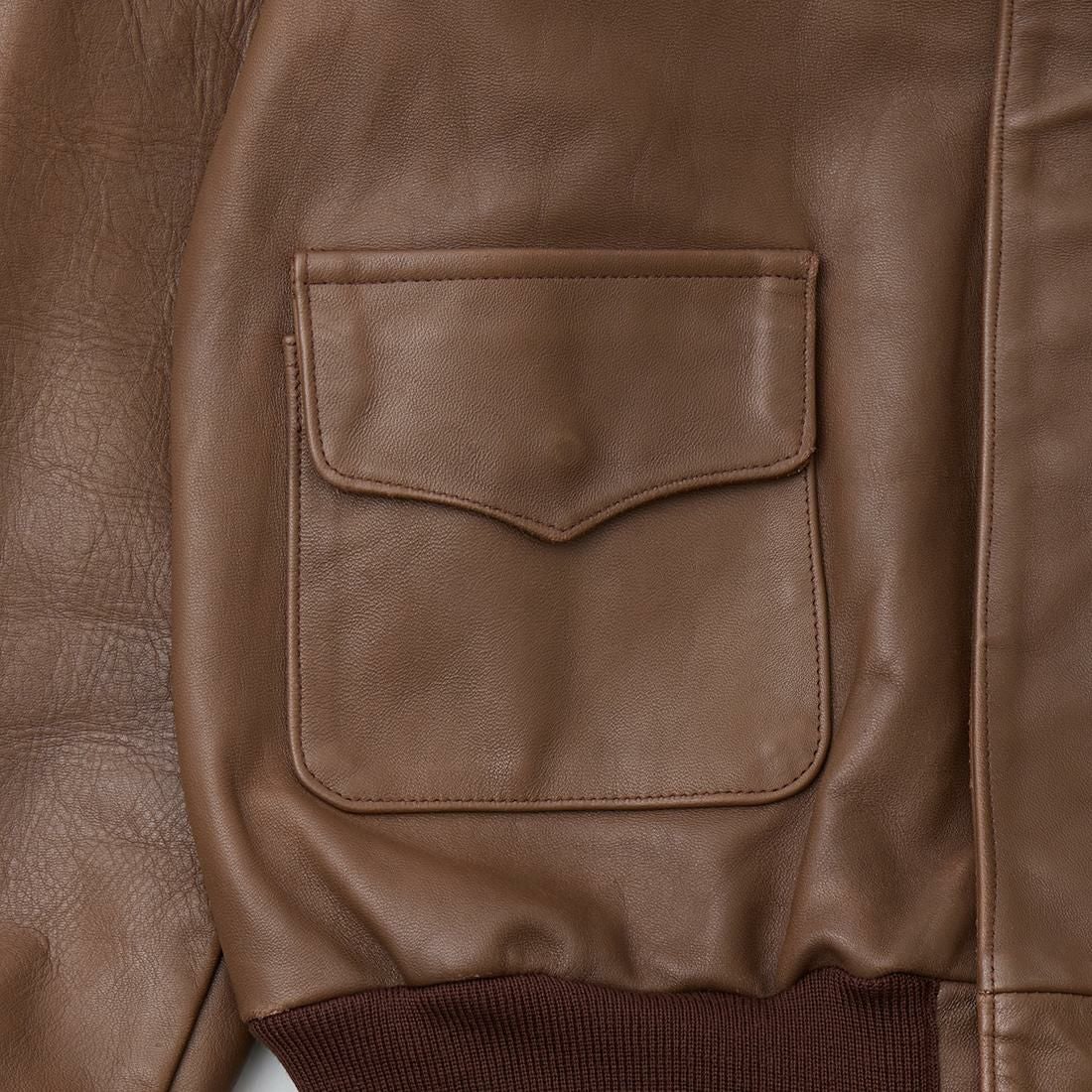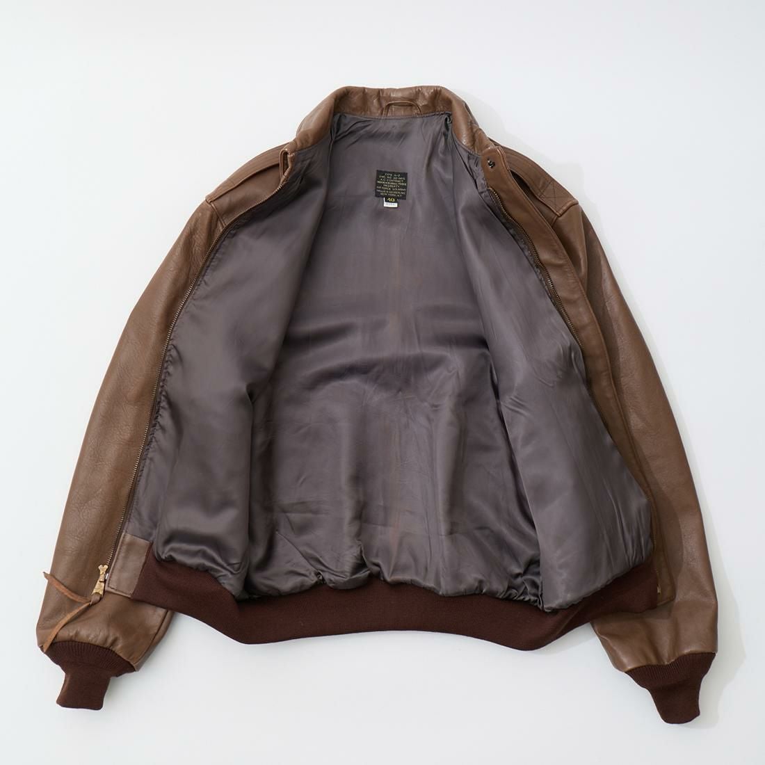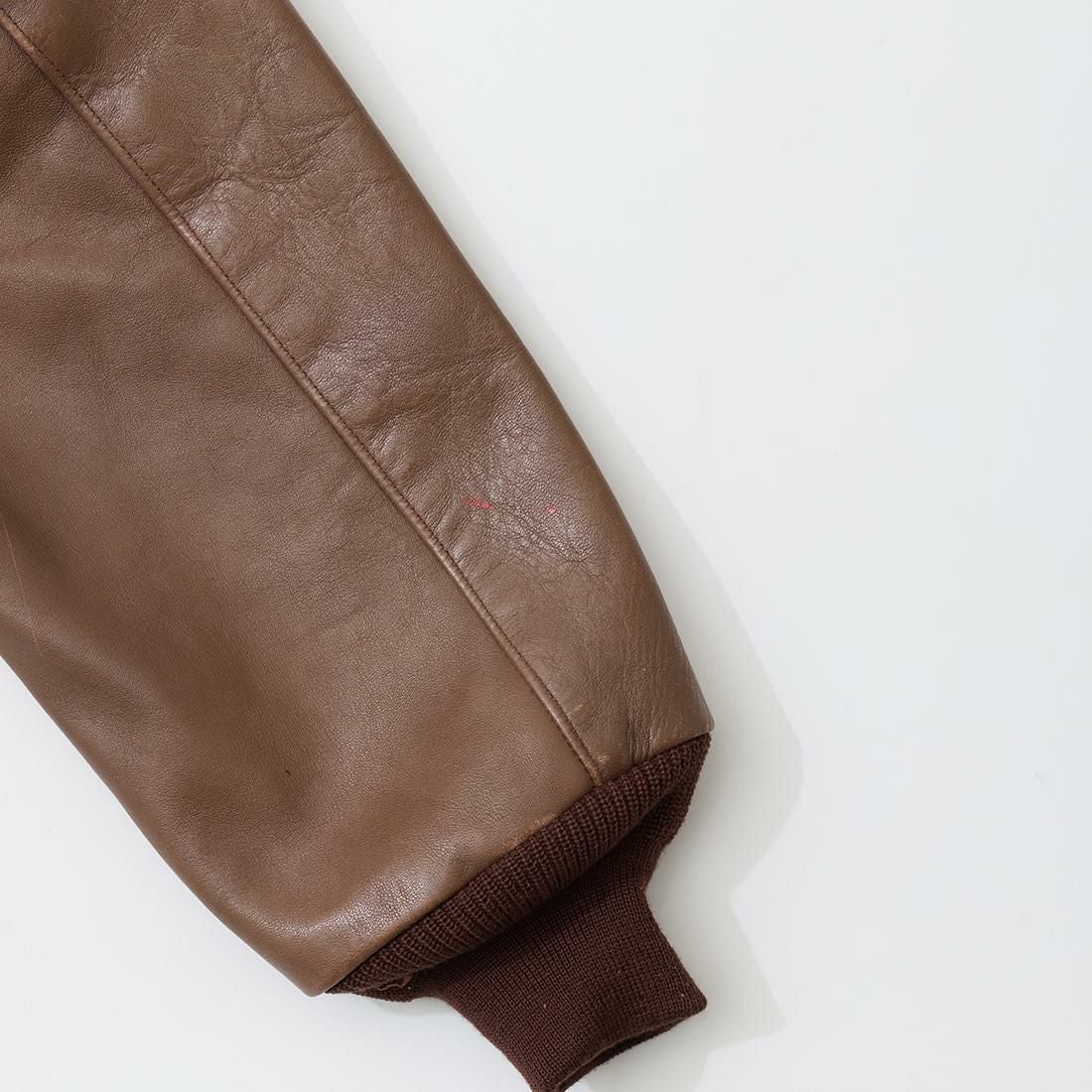 他の画像を見る ユーズド ヴィンテージ A-2 レザージャケット アメリカ製 【USED サイズ40 袖口・裾ニットリブ交換済】WILLIS & GEIGER (ウィリスアンドガイガー) VINTAGE A-2 LEATHER JACKET - BROWN 販売価格 ¥ 140,800 税込 お気に入りに登録する
