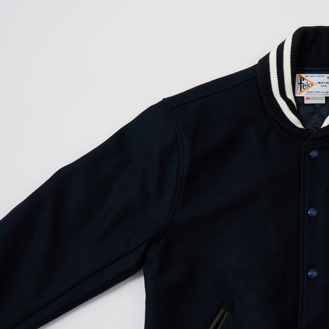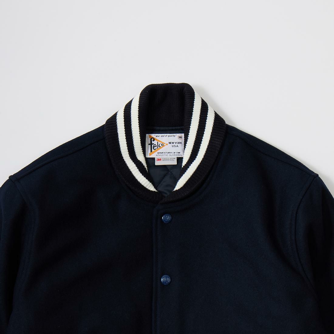 他の画像を見る メンズ ウールメルトン ショールカラー バーシティジャケット キルティングライニング FELCO (フェルコ) SHAWL COLLAR VARSITY JACKET w/QUILT LINING ALL MELTON - NAVY 販売価格 ¥ 49,500 税込 お気に入りに登録する