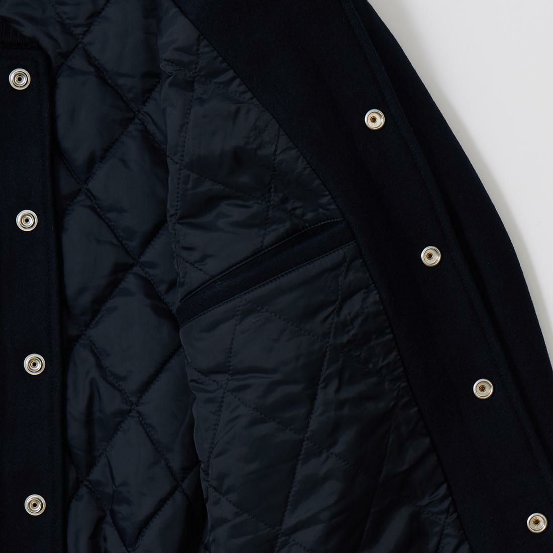 他の画像を見る メンズ ウールメルトン ショールカラー バーシティジャケット キルティングライニング FELCO (フェルコ) SHAWL COLLAR VARSITY JACKET w/QUILT LINING ALL MELTON - BLACK 販売価格 ¥ 49,500 税込 お気に入りに登録する