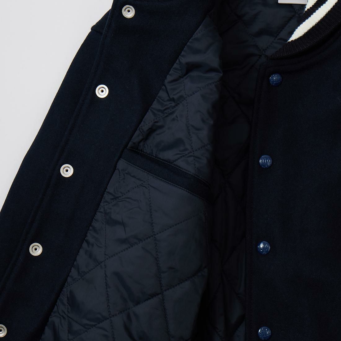 他の画像を見る メンズ アウター スタジャン アメリカ製 アメカジ GB SPORTS (ジービースポーツ) THE ALBANY - CLASSIC FIT SNAP FRONT WOOL LEATHER VARSITY JACKET QUILT LINING - NAVY MELTON_CREAM COW LEATHER 販売価格 ¥ 118,800 税込 お気に入りに登録する