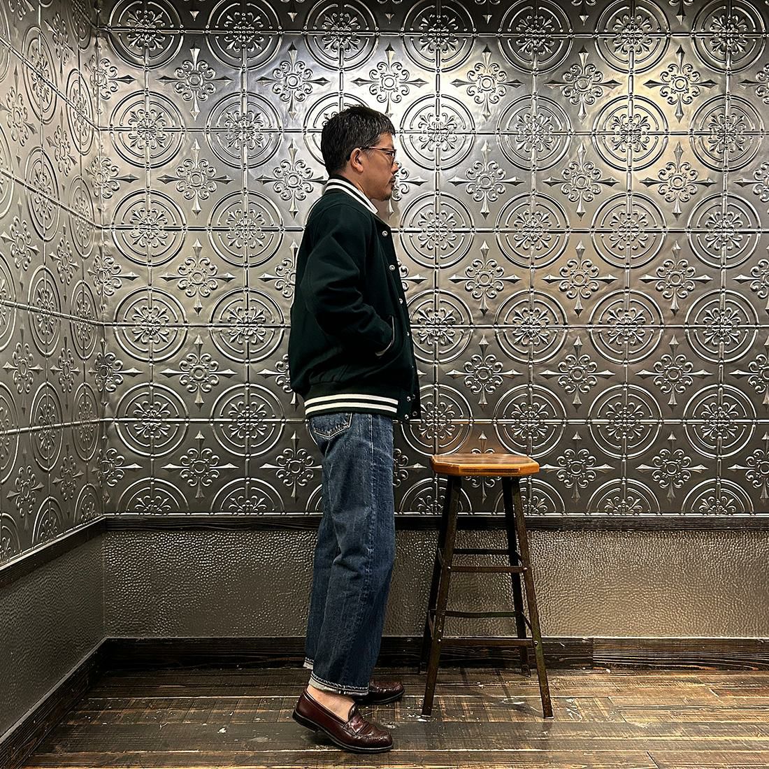 他の画像を見る メンズ ウールメルトン ショールカラー バーシティジャケット キルティングライニング FELCO (フェルコ) SHAWL COLLAR VARSITY JACKET w/QUILT LINING ALL MELTON - DK GREEN 販売価格 ¥ 49,500 税込 お気に入りに登録する