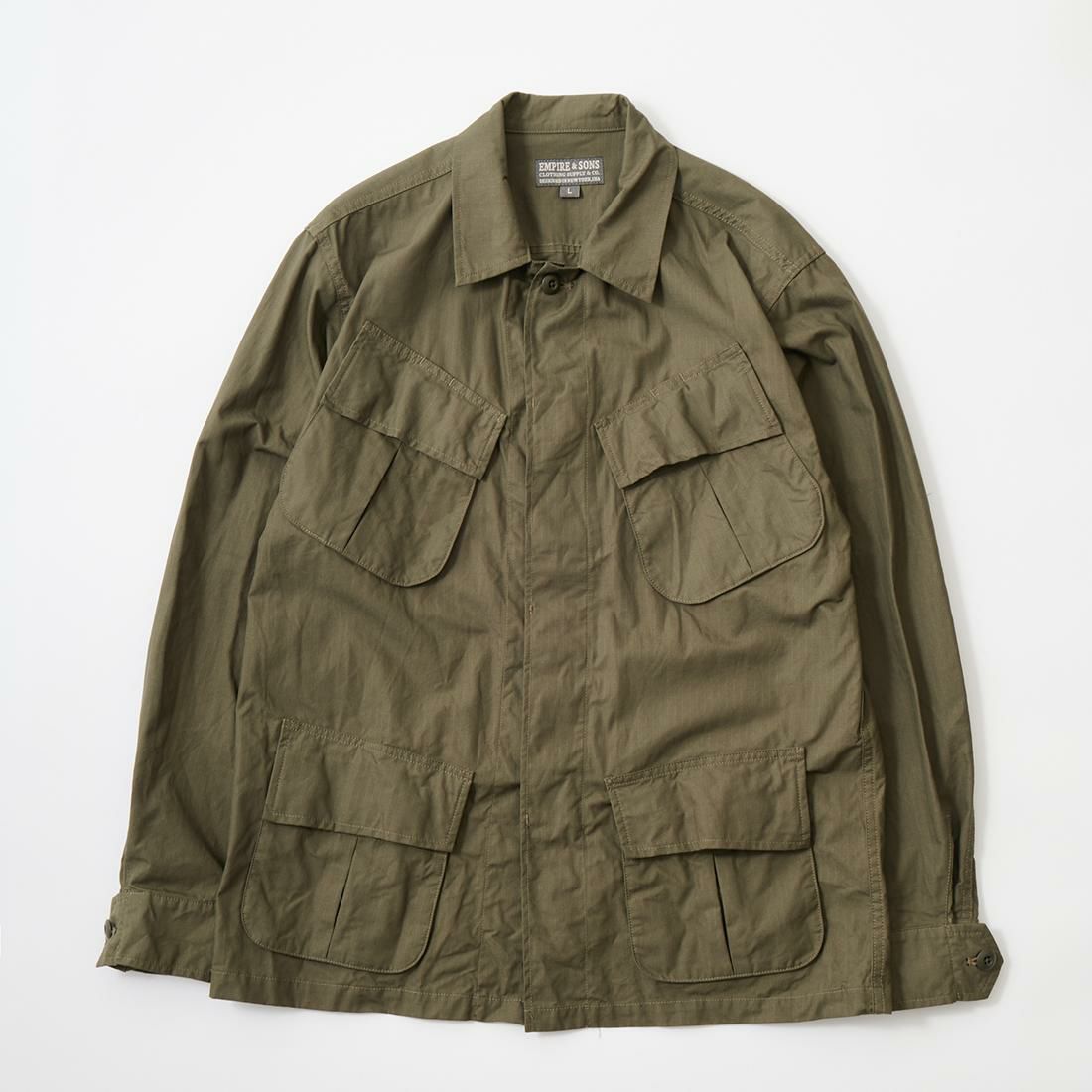 他の画像を見る コットンリップストップ ジャングルファティーグジャケット EMPIRE & SONS (エンパイア アンド サンズ) JUNGLE FATIGUE JACKET COTTON RIPSTOP - OLIVE ¥ 42,900 税込 お気に入りに登録する
