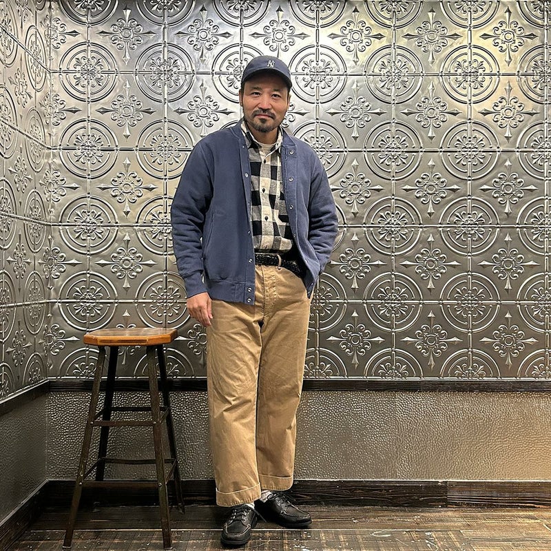 170センチ68キロでMサイズで丁度良いサイズです。シャツにミドルゲージのニット着て羽織ってもゆとりがあります。アメカジ、スポーツスタイル好きな方にオススメしたいアイテム。しっかり中に着込めば冬でも着れますし。シャツやカットソーぐらいでしたら春秋でも着れますからね。そういう意味では長いシーズン重宝して頂ける1着ですね。