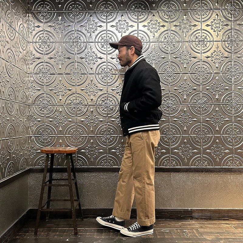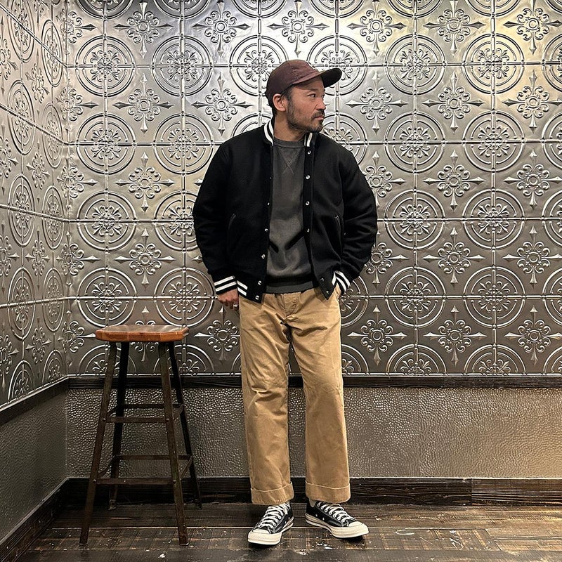 メンズ ウールメルトン ショールカラー バーシティジャケット キルティングライニング