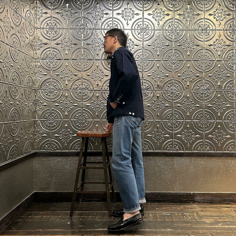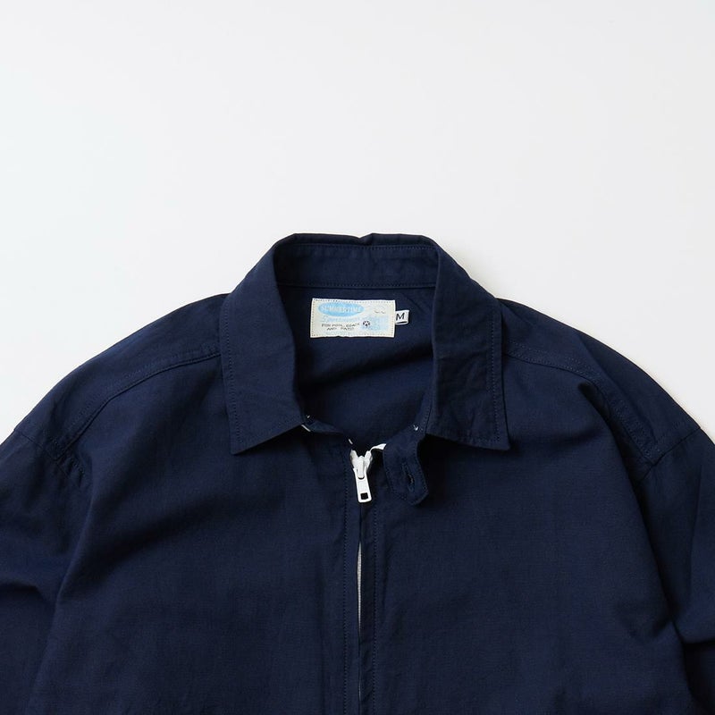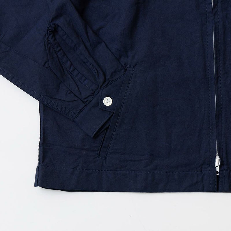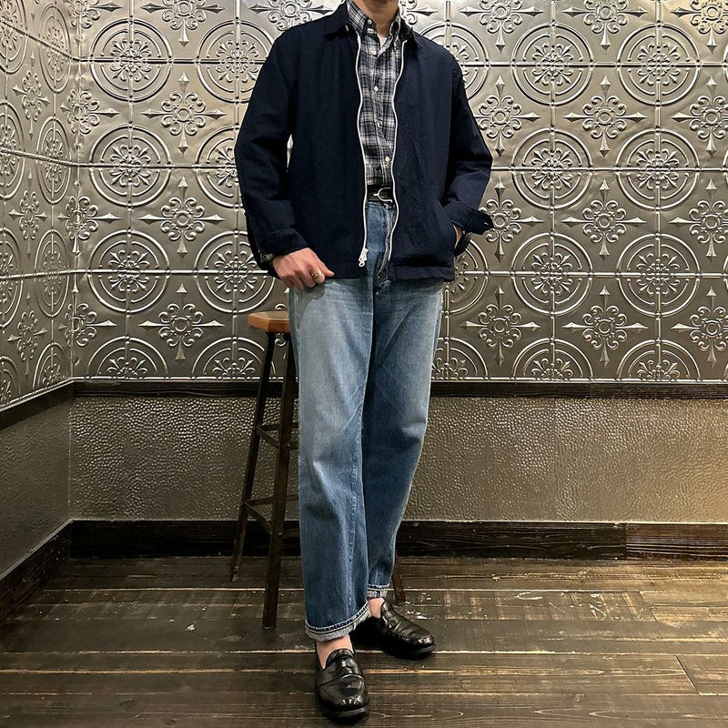 WORKERS(ワーカーズ)のSWING TOP COMBED OX。5オンスのオックスフォード素材を使用したスウィングトップ。ビンテージのスウィングトップがデザインソース。やや小ぶりの襟にチンストラップ。前立てはジップフロント。ダブルジップを採用。腰上の左右にはハンドポケットを装備。バックの裾にはボタン式のアジャスター。シルエットアレンジが可能。薄手のシャツ生地なので、暑い時期にもサッと羽織れる1着。