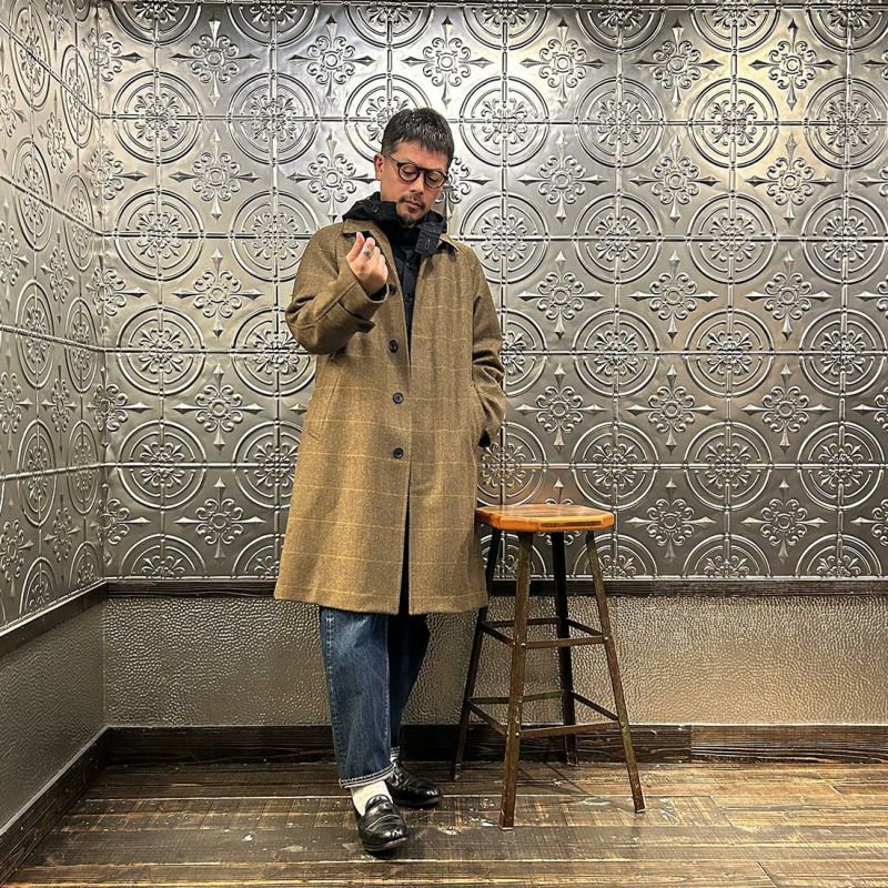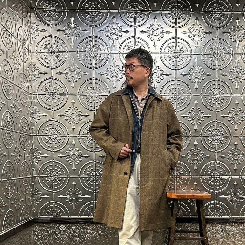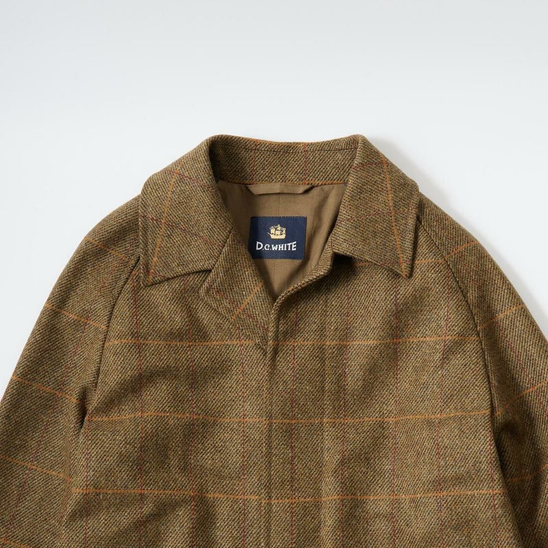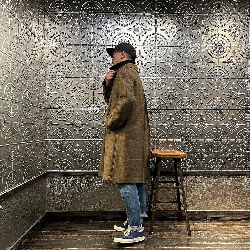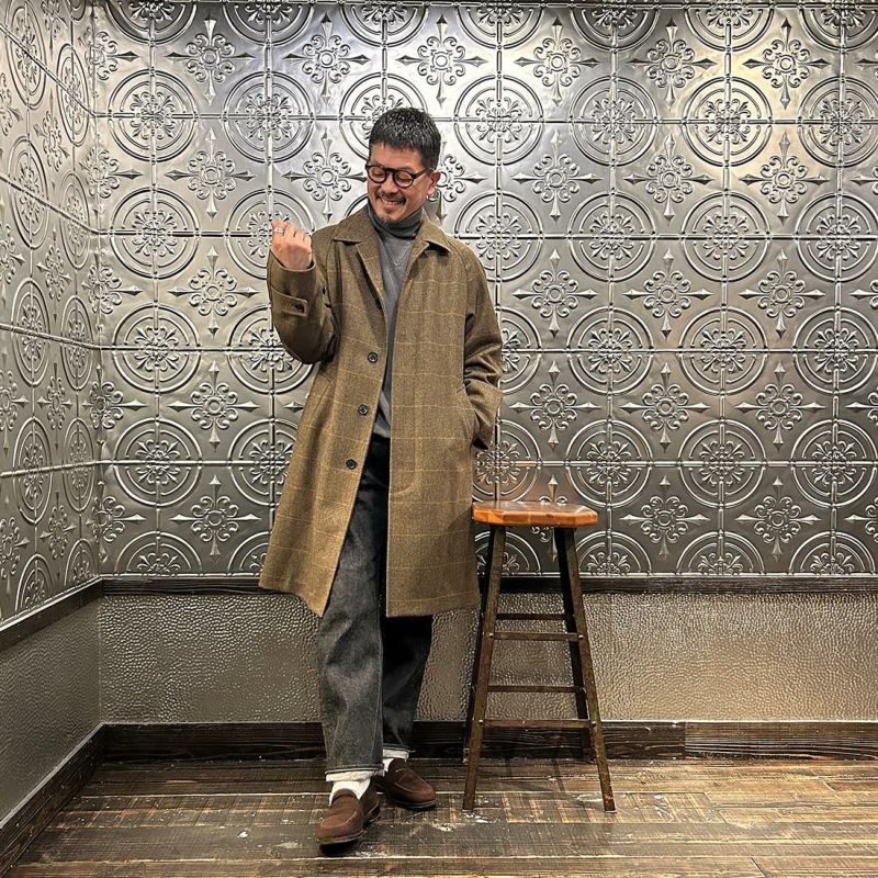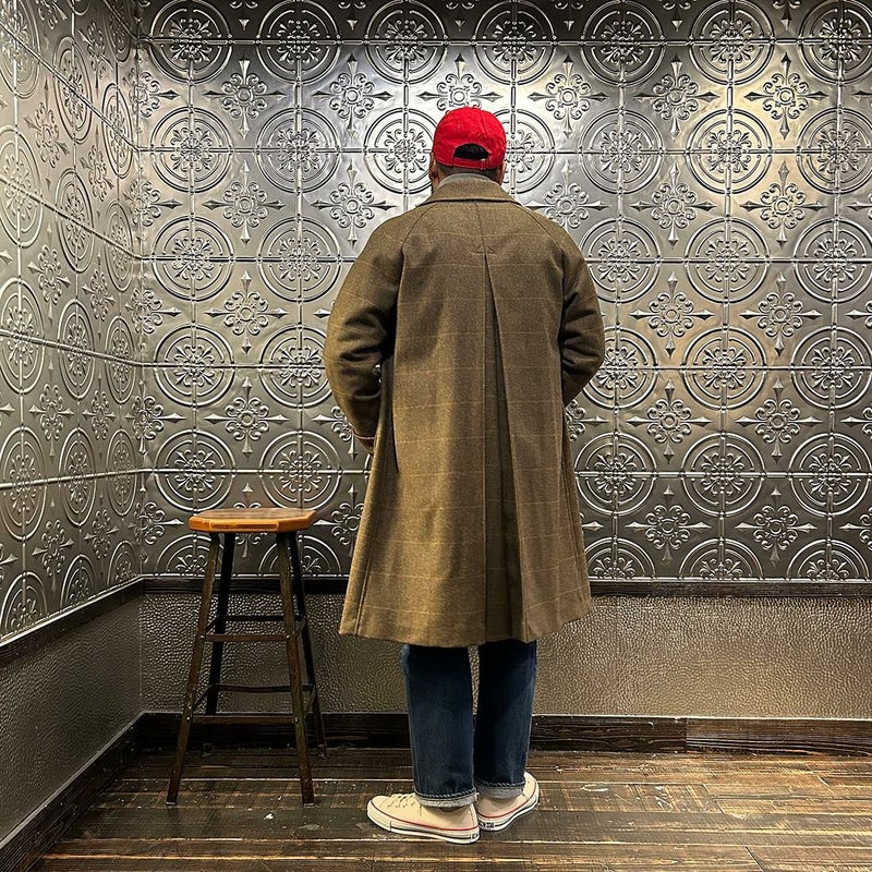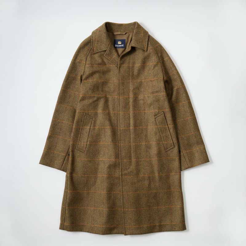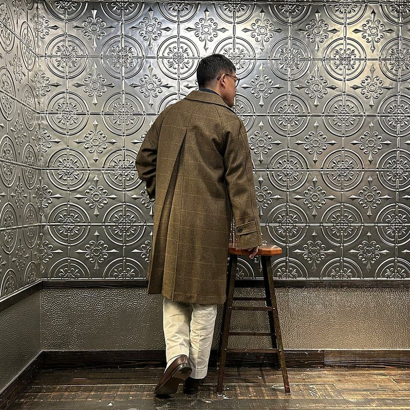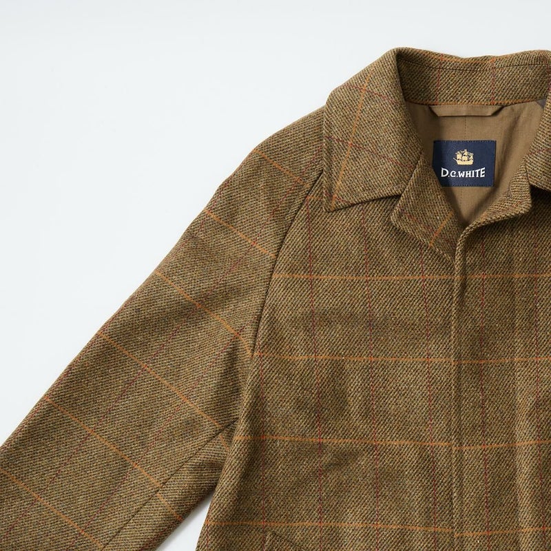 国内ブランドD.C. WHITE(ディーシーホワイト)のCAMBRIDGE。アメリカントラッドのルーツであるブリティッシュトラッドの象徴的な場所「ケンブリッジ」がイメージソースのコート。背面の深めのインバーテッドプリーツが特徴のAラインのコート。イギリス「DUGDALE BROS&Co」の目の詰まった重厚なツイード生地。ハリスツイードのフワッとした甘めな織りではなくガチガチな目の詰まった固めのツイード。現環境下で考えると今後はかなり希少な存在になる可能性がある英国ツイードを使って、日本国内のクロージング工場で縫製。スーツスタイルの上にもカジュアルスタイルの上にも羽織る事が可能な存在感のある一枚。