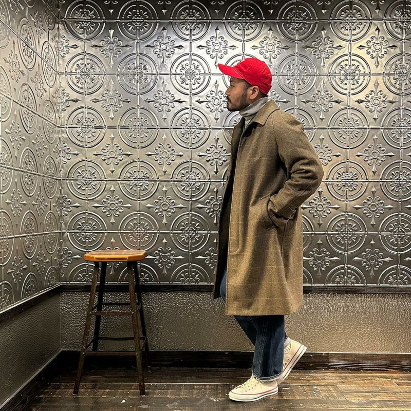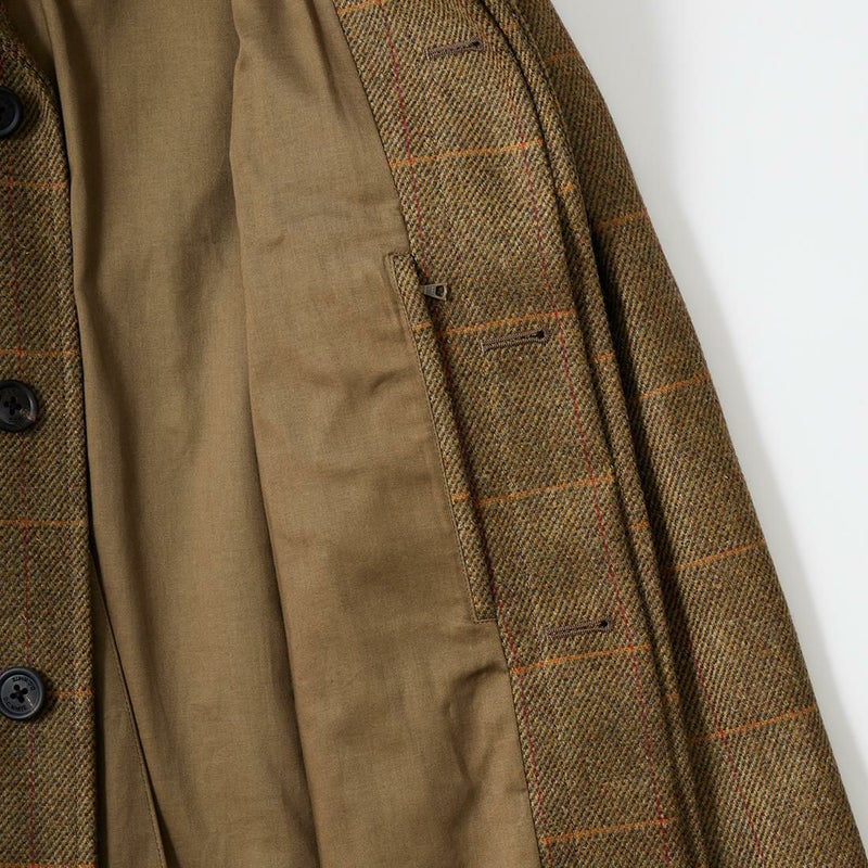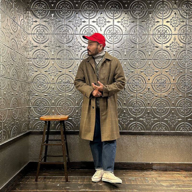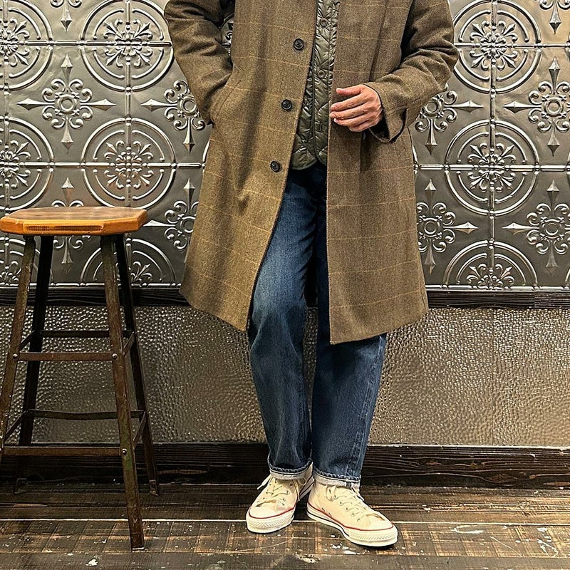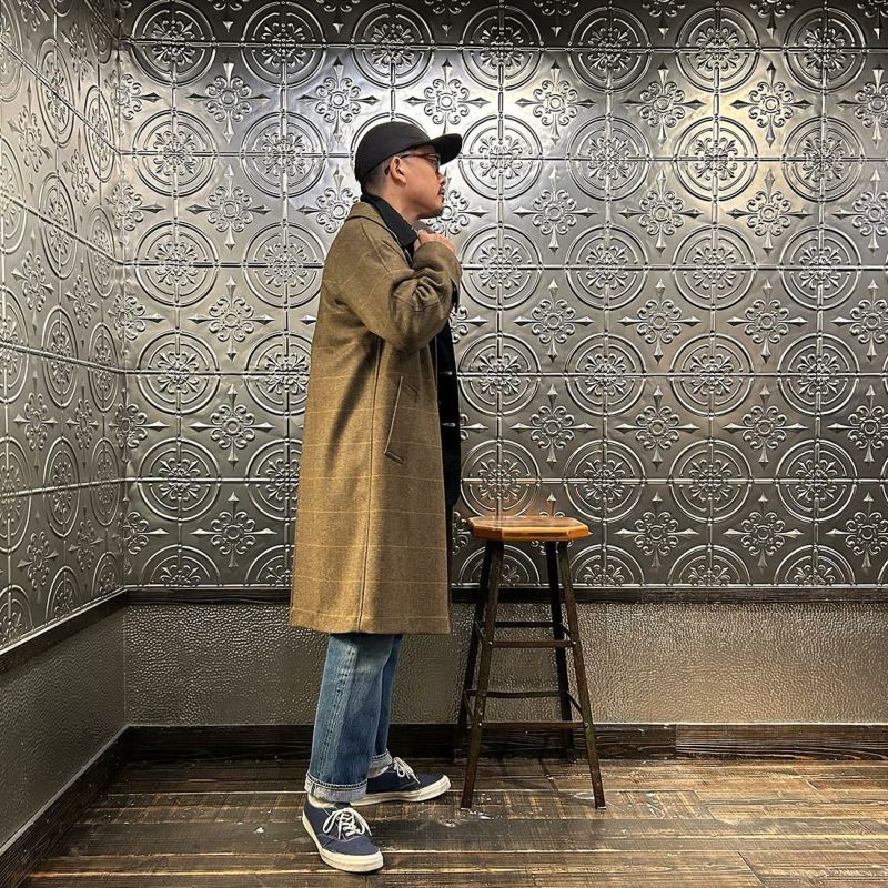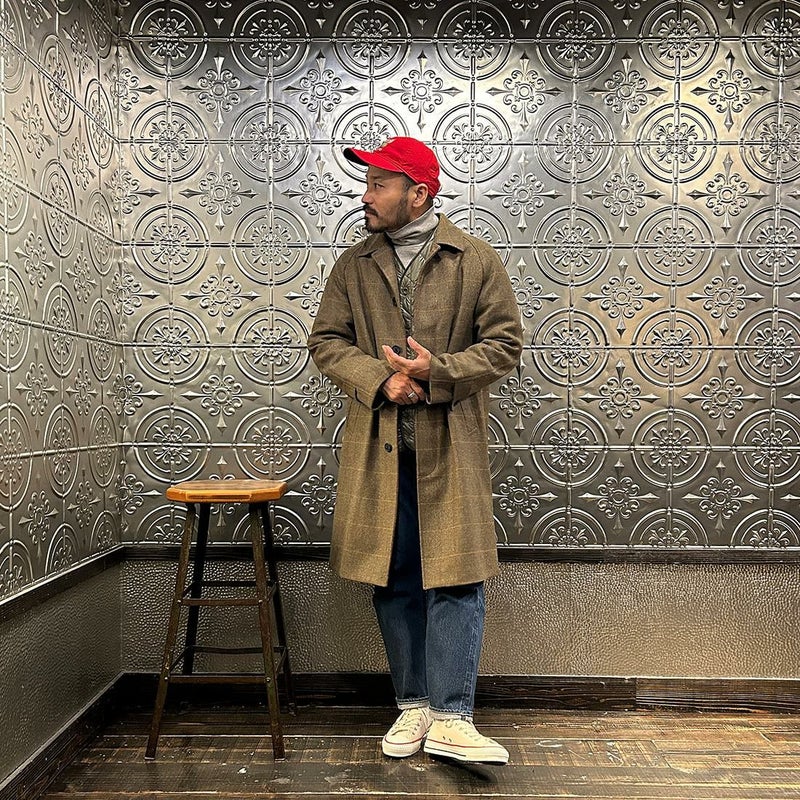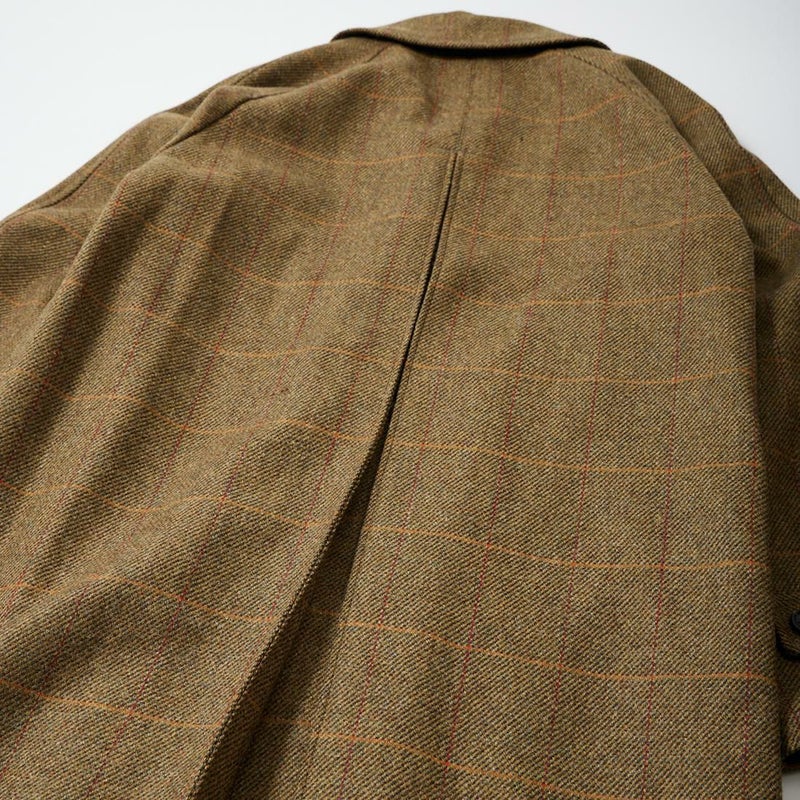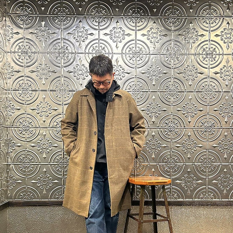 国内ブランドD.C. WHITE(ディーシーホワイト)のCAMBRIDGE。アメリカントラッドのルーツであるブリティッシュトラッドの象徴的な場所「ケンブリッジ」がイメージソースのコート。背面の深めのインバーテッドプリーツが特徴のAラインのコート。イギリス「DUGDALE BROS&Co」の目の詰まった重厚なツイード生地。ハリスツイードのフワッとした甘めな織りではなくガチガチな目の詰まった固めのツイード。現環境下で考えると今後はかなり希少な存在になる可能性がある英国ツイードを使って、日本国内のクロージング工場で縫製。スーツスタイルの上にもカジュアルスタイルの上にも羽織る事が可能な存在感のある一枚。