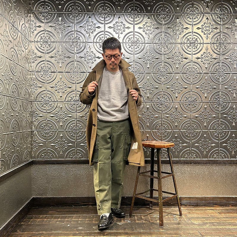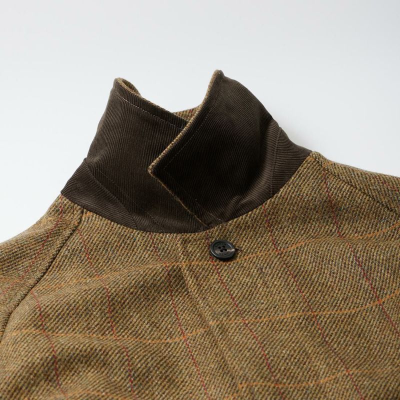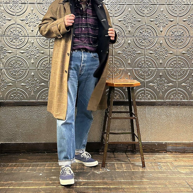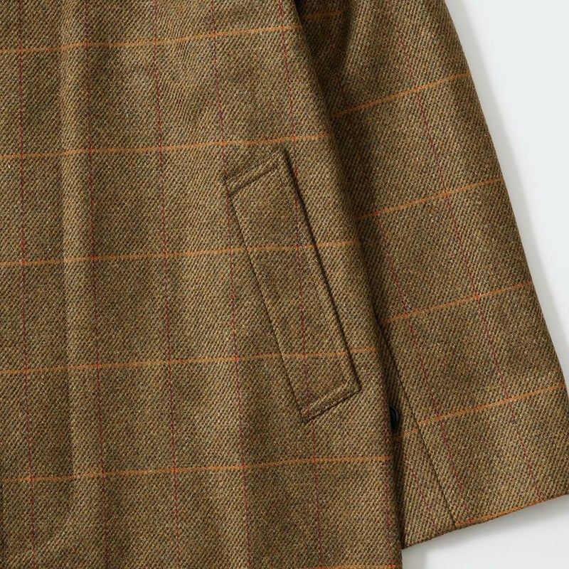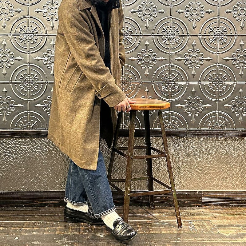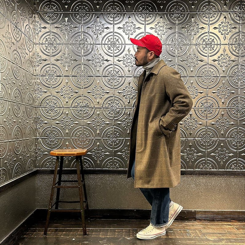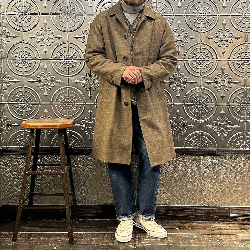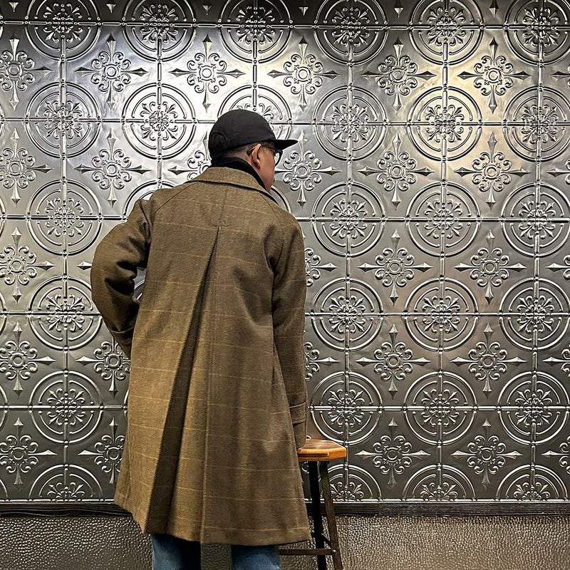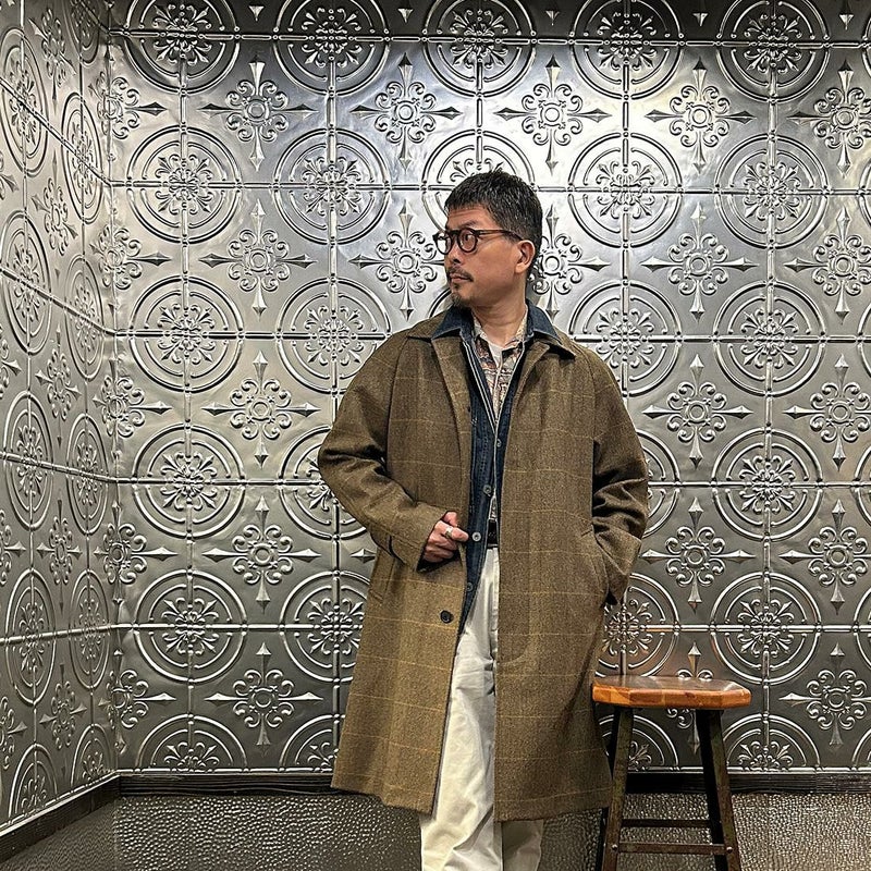 国内ブランドD.C. WHITE(ディーシーホワイト)のCAMBRIDGE。アメリカントラッドのルーツであるブリティッシュトラッドの象徴的な場所「ケンブリッジ」がイメージソースのコート。背面の深めのインバーテッドプリーツが特徴のAラインのコート。イギリス「DUGDALE BROS&Co」の目の詰まった重厚なツイード生地。ハリスツイードのフワッとした甘めな織りではなくガチガチな目の詰まった固めのツイード。現環境下で考えると今後はかなり希少な存在になる可能性がある英国ツイードを使って、日本国内のクロージング工場で縫製。スーツスタイルの上にもカジュアルスタイルの上にも羽織る事が可能な存在感のある一枚。