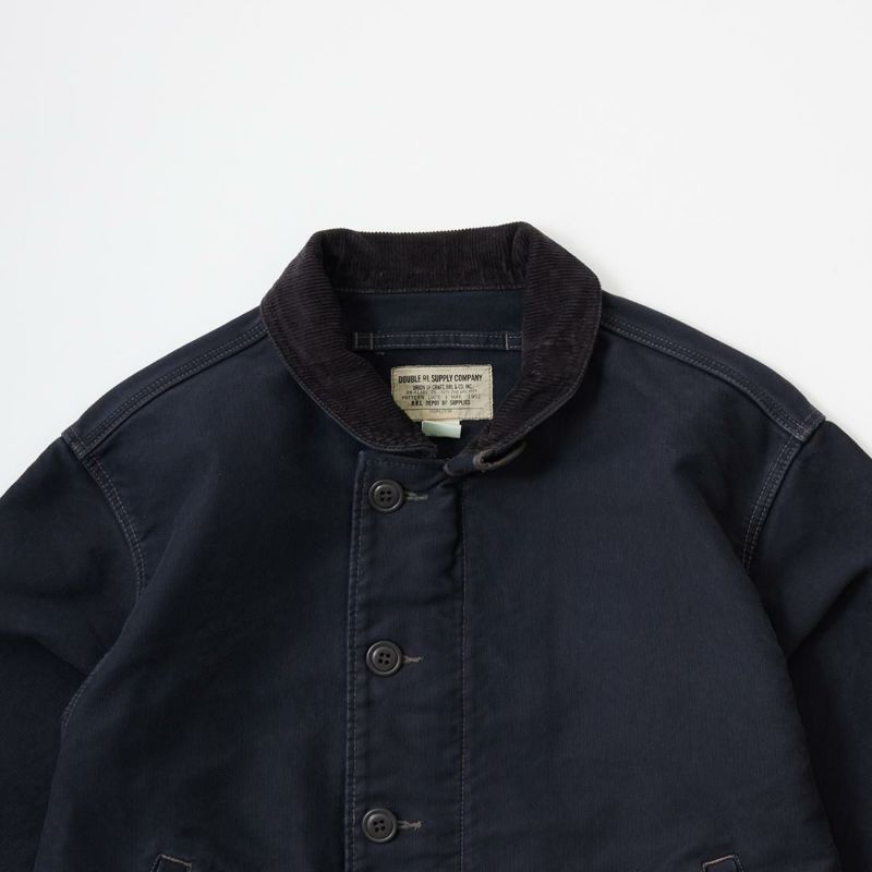 Double RL(ダブル アール エル)のBOWER DECK COTTON JACKET COTTON JUNGLE CLOTH。ヴィンテージのデッキジャケットがデザインソースとされた1着。コーデュロイのショールカラーが特徴的なデザイン。フロントウエストに2つのポケットと左ウエストの内側にもポケットを装備。柔らかな肌触りと耐候性を備えたグログラン織りの特別に開発されたジャングルクロスを再現した素材を使用。染色と着色加工を施しヴィンテージ感たっぷりのDouble RL(ダブル アール エル)らしい1着に仕上げられています。