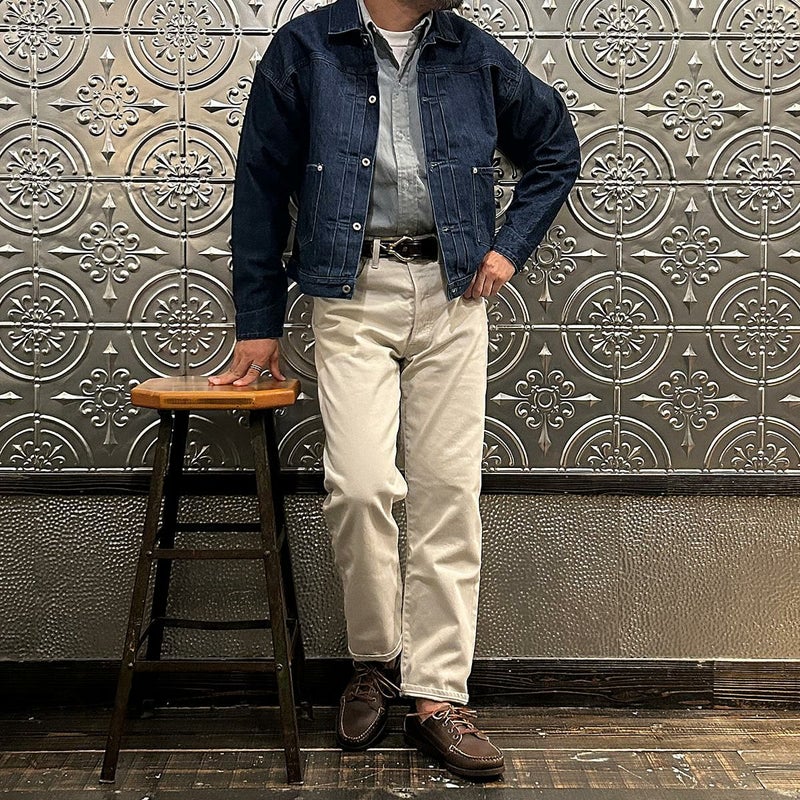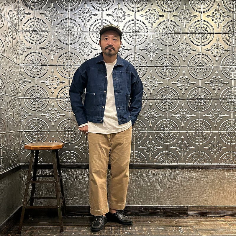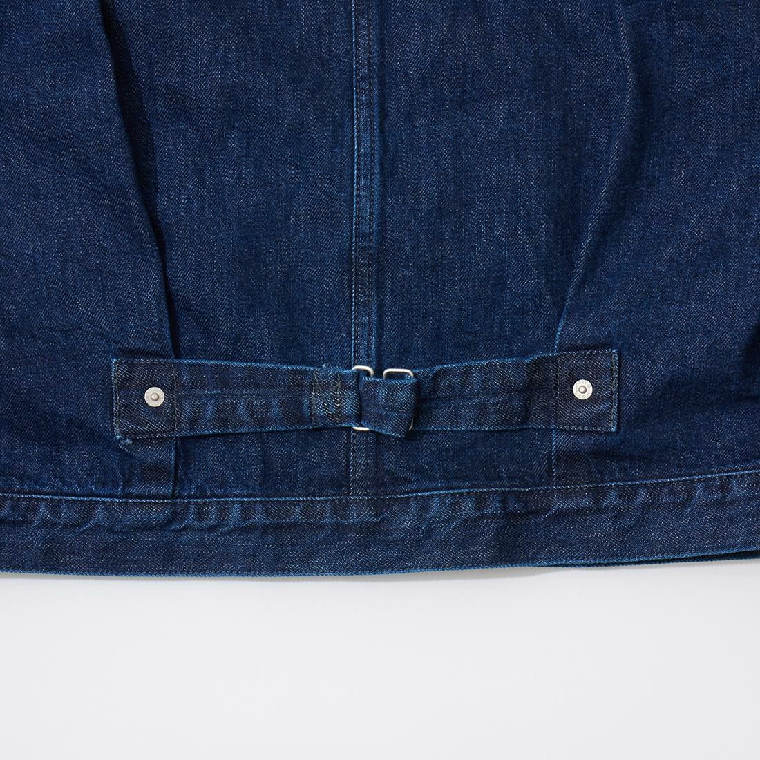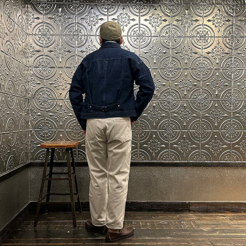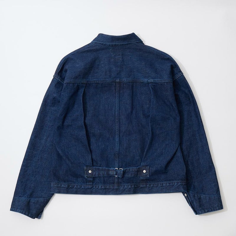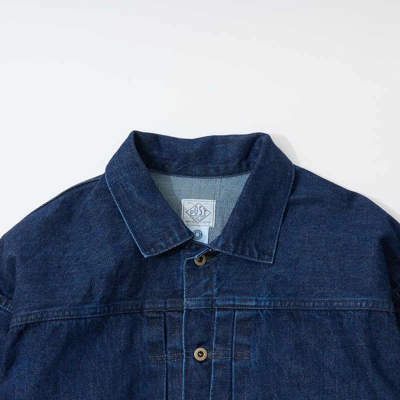 POST OVERALLS (ポストオーバーオールズ) のEL RANCHERO 3 12oz DENIM。デニムのショートジャケット。フロントに2つのパッチポケット。背面はTバックでバックシンチも装備。ドロップショルダーも特徴。身幅が広く着丈の短いボックスシルエット。素材は12オンスのコットンデニム。