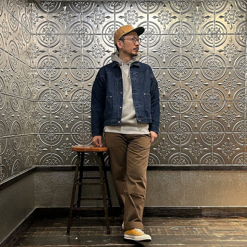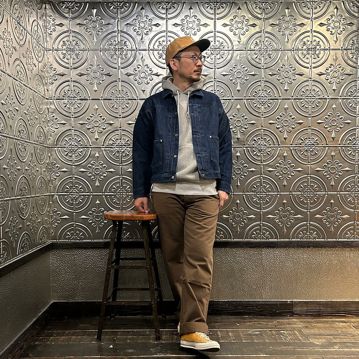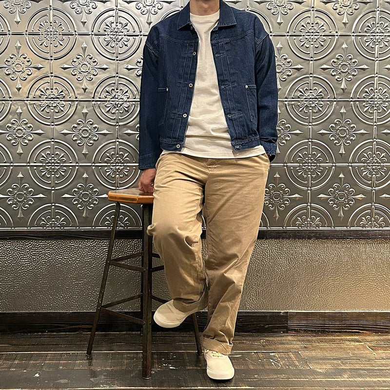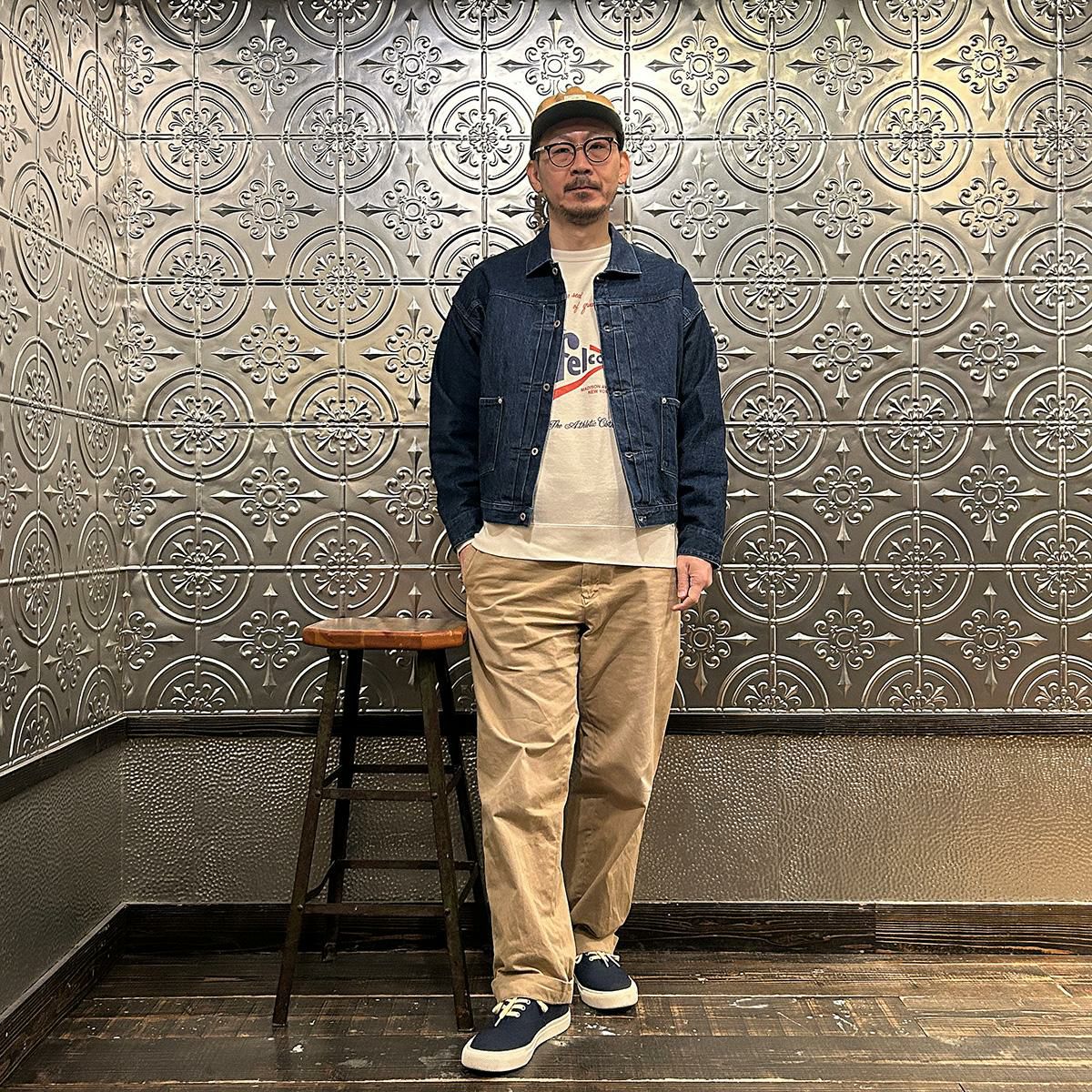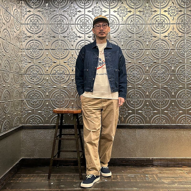 POST OVERALLS (ポストオーバーオールズ) のEL RANCHERO 3 12oz DENIM。デニムのショートジャケット。フロントに2つのパッチポケット。背面はTバックでバックシンチも装備。ドロップショルダーも特徴。身幅が広く着丈の短いボックスシルエット。素材は12オンスのコットンデニム。