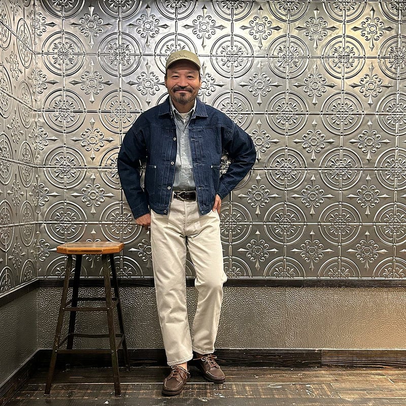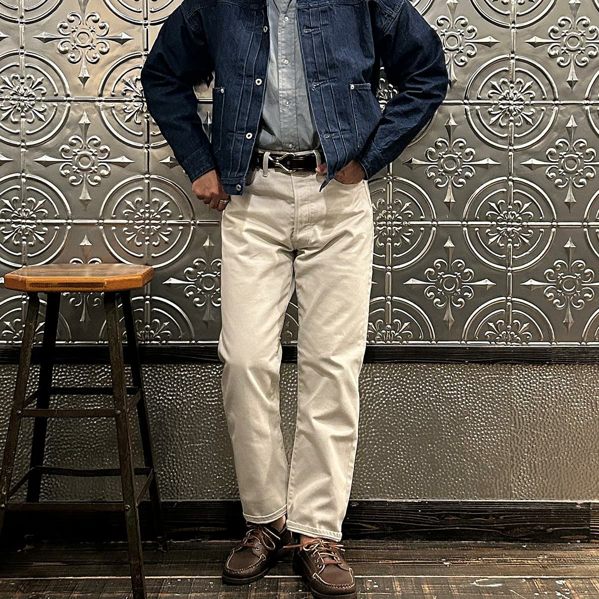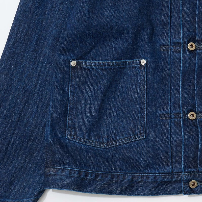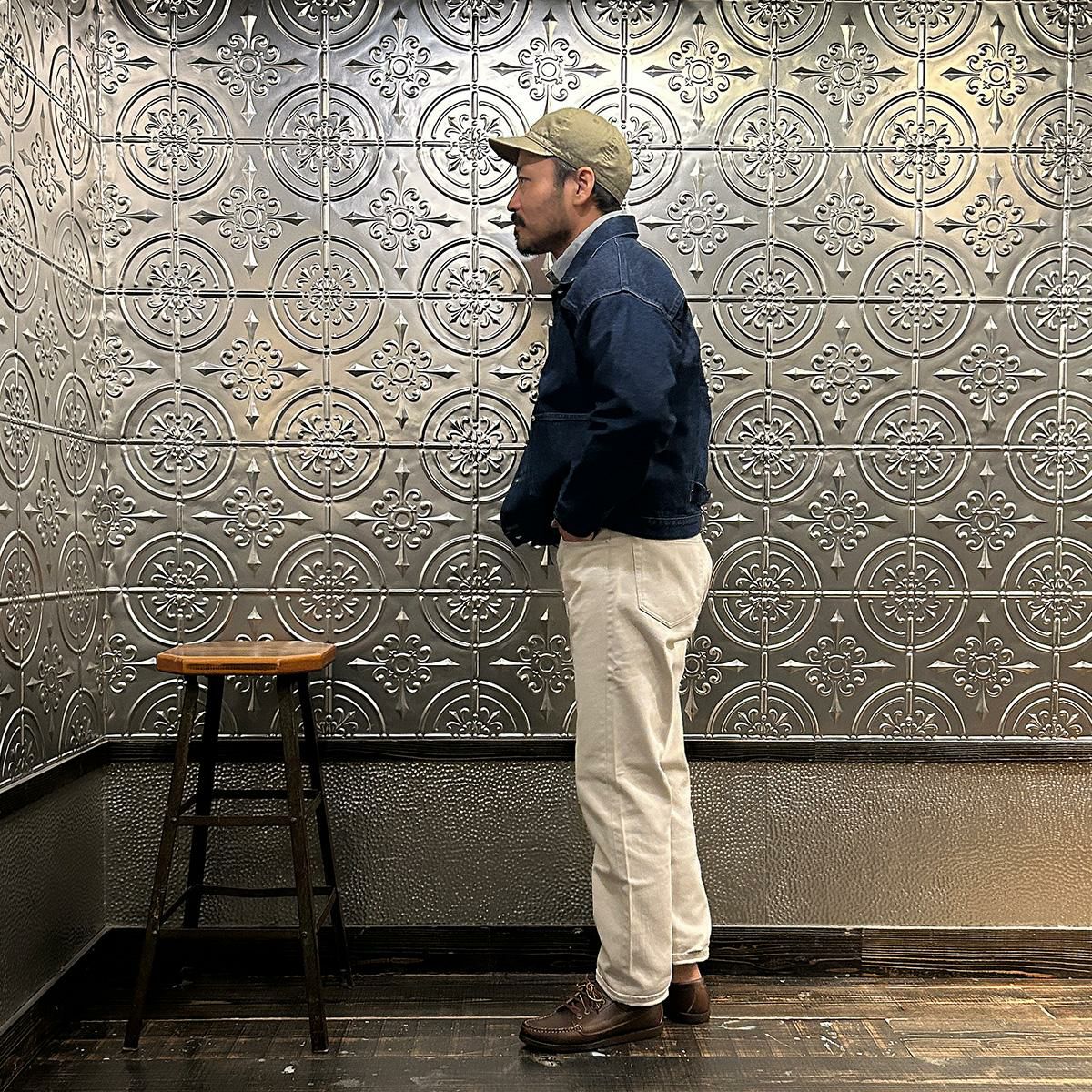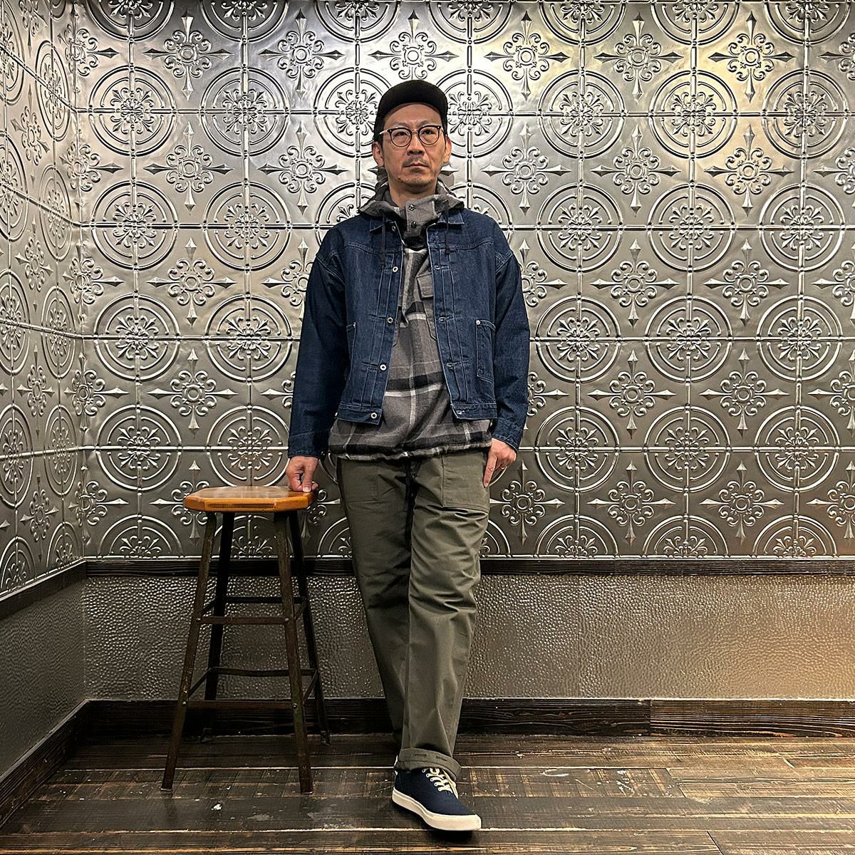 POST OVERALLS (ポストオーバーオールズ) のEL RANCHERO 3 12oz DENIM。デニムのショートジャケット。フロントに2つのパッチポケット。背面はTバックでバックシンチも装備。ドロップショルダーも特徴。身幅が広く着丈の短いボックスシルエット。素材は12オンスのコットンデニム。