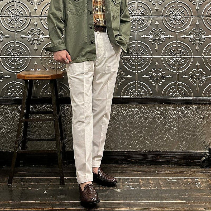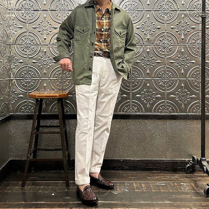 EMPIRE&SONS(エンパアアンドサンズ)のWORK SHIRT JACKET HIGHCOUNT CHINO CLOTH。しっかりとしたハリのあるコットンチノクロスを使用したシャツジャケット。クラシックな雰囲気の大きめの襟。左右に配置されたフラップ付きパッチポケット。袖口はカフ仕様。裾の両サイドにスリット付き。コットンチノクロスの経年変化も楽しみな1着。