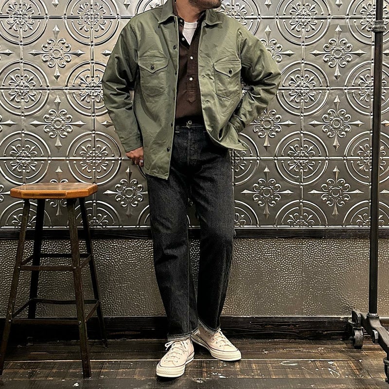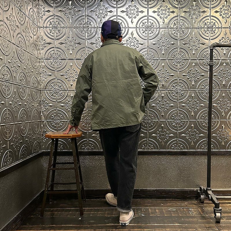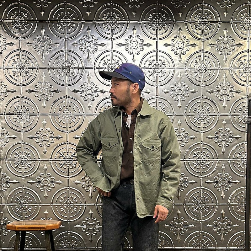 170センチ68キロで「M」サイズで丁度良いです。このサイズであれば中にしっかり着込めるため真冬の着用も可能。また軽めのTシャツを着て羽織っても大きすぎることはありません。ゆったりとしたサイズ感のアウターであればインナーとしても着用できます。長いシーズン着て頂ける汎用性に優れた1着。ガシガシ着倒していくことでアタリ、パッカリングが楽しみなシャツジャケです。
