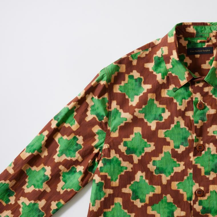 他の画像を見る ハドリーシャツジャケット プリント イタリア製 East Harbour Surplus (イーストハーバーサープラス) HADLEY SHIRT JACKET PRINT - BROWN 販売価格 ¥ 46,200 税込 お気に入りに登録する