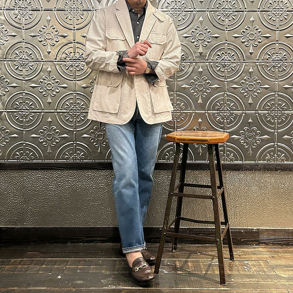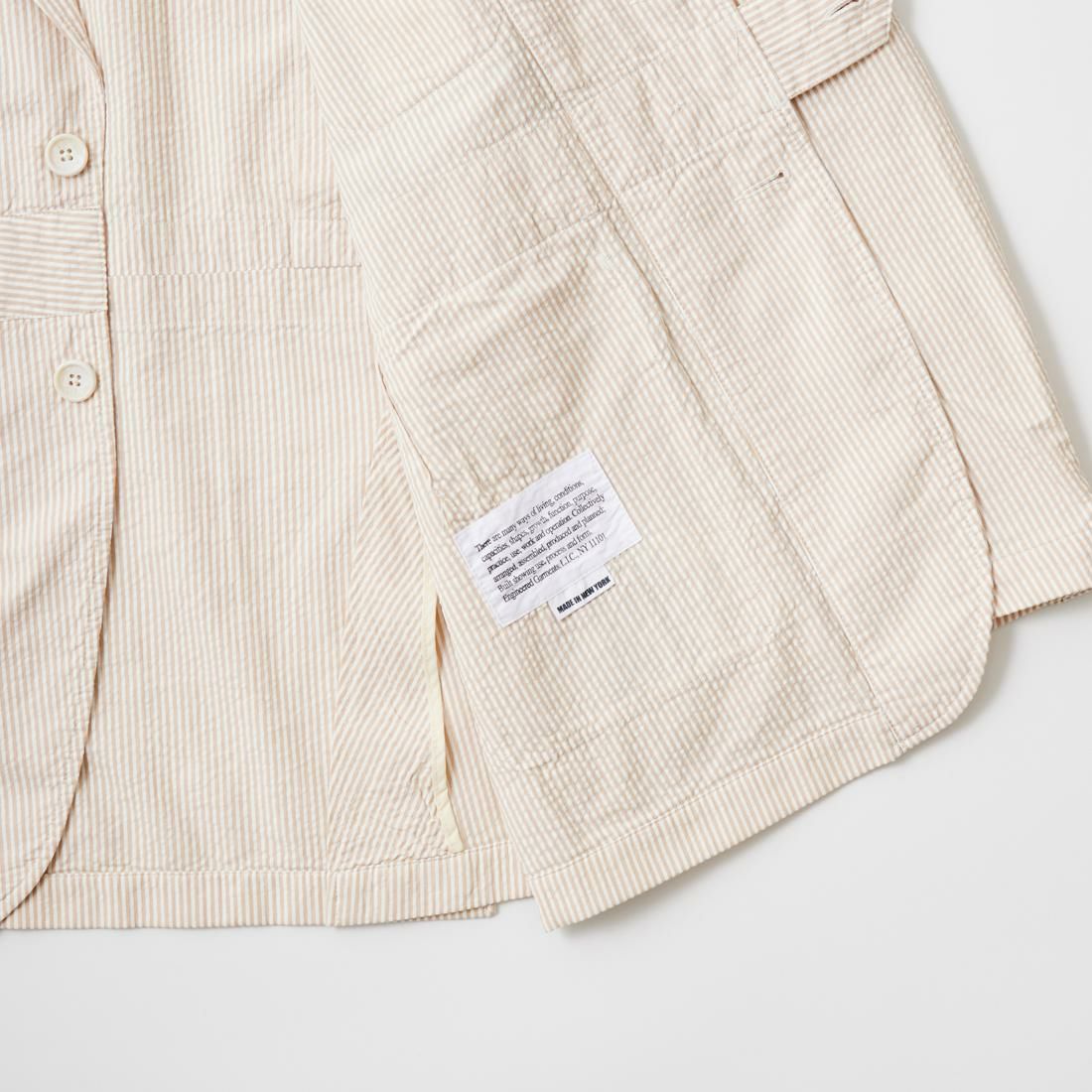 他の画像を見る 2025春夏新作 QT130 フォークジャケット コットン シアサッカーストライプ ENGINEERED GARMENTS (エンジニアドガーメンツ) FOLK JACKET COTTON SEERSUCKER STRIPE - BEIGE 販売価格 ¥ 83,600 税込 お気に入りに登録する