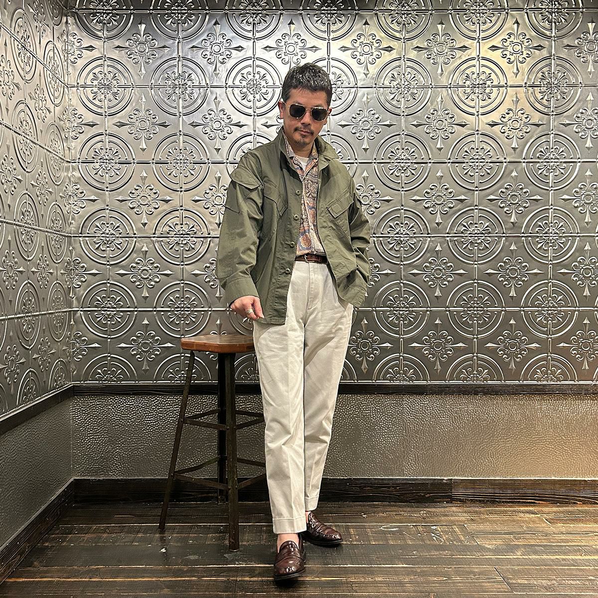 他の画像を見る Explorer別注 ミリタリーヘリンボーン シャツジャケット 1940年代 13スターメタルボタン EMPIRE & SONS (エンパイア アンド サンズ) HBT SHIRT JACKET 40's 13 STAR METAL BUTTON - OD ¥ 38,500 税込 お気に入りに登録する