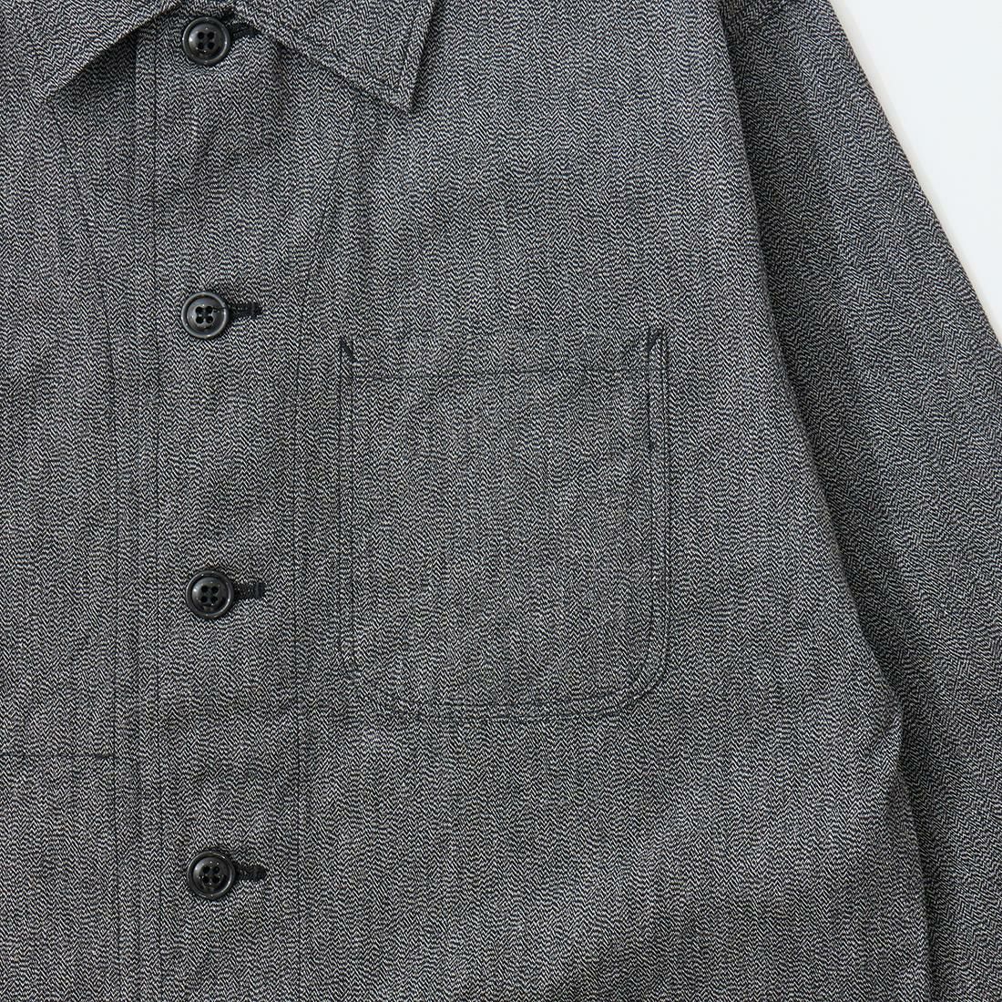 他の画像を見る 2023秋冬新作 NQ212 ビーエーシャツジャケット ポリエステルウール ヘリンボーン ’ ENGINEERED GARMENTS (エンジニアドガーメンツ) BA SHIRT JACKET POLY WOOL HERRINGBONE - GREY 販売価格 ¥ 57,200 税込 × 在庫切れ お気に入りに登録する