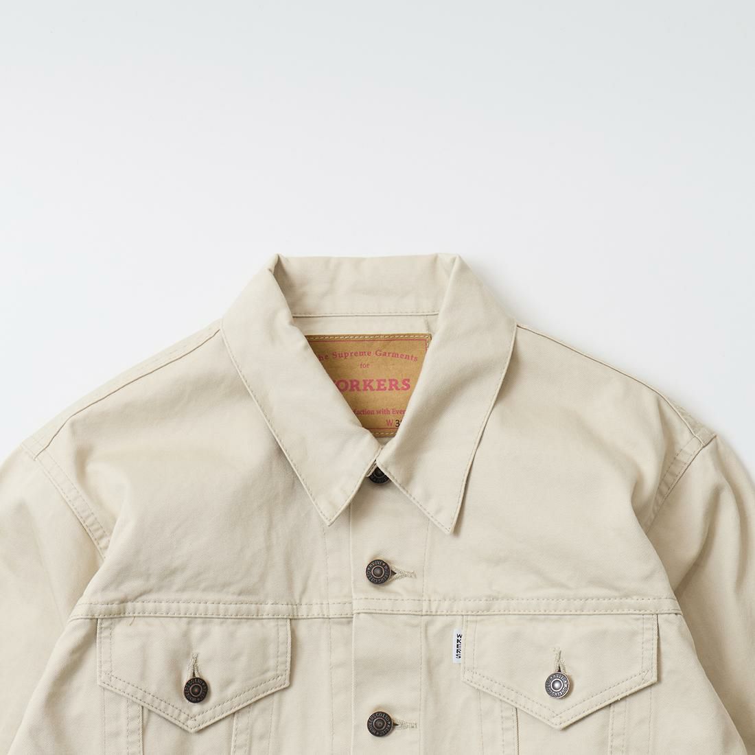 他の画像を見る ロット857 サンフォライズ 10オンス ダブルツイスト チノジャケット メンズ 日本製 WORKERS (ワーカーズ) Lot 857 SANFORIZED 10oz DOUBLE TWIST CHINO JACKET - OYSTER 販売価格 ¥ 36,300 税込 お気に入りに登録する