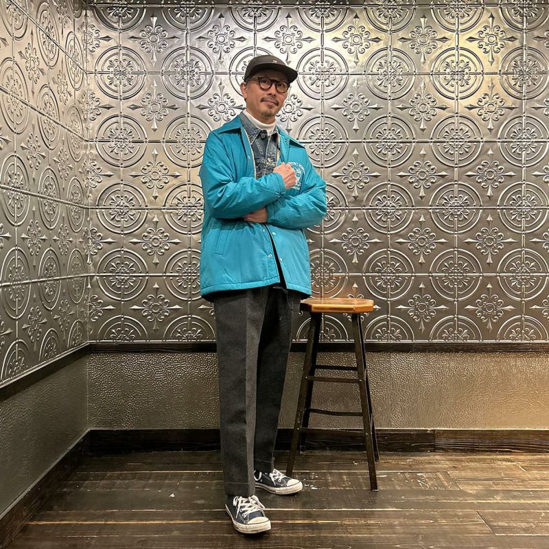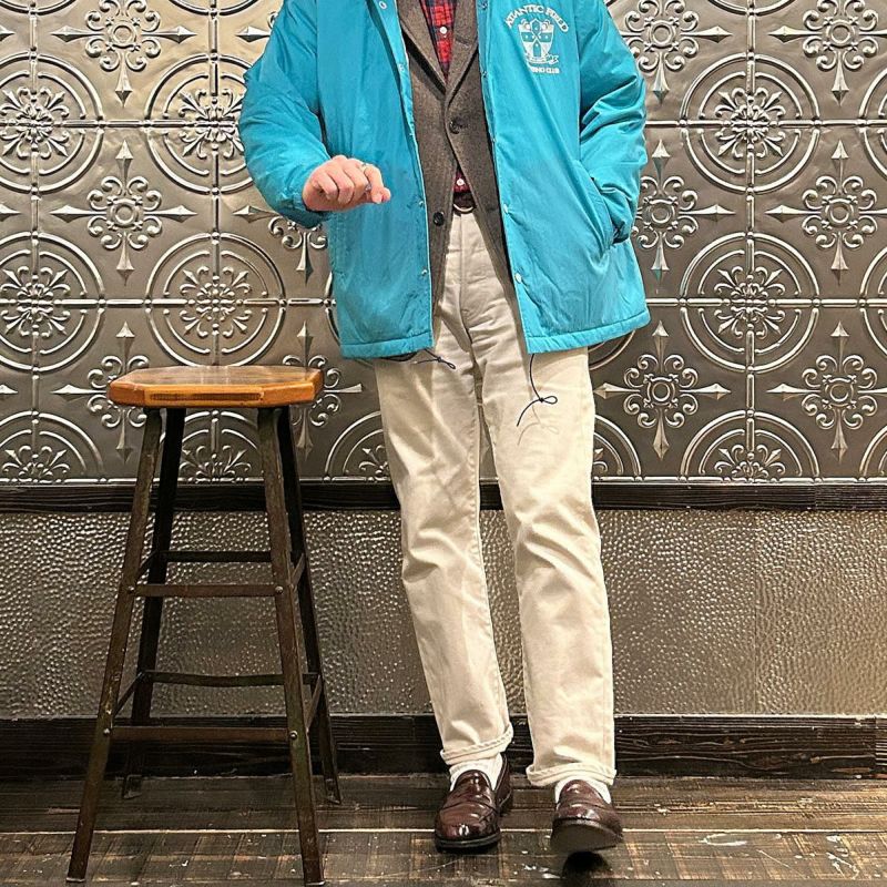 D.C. WHITE(ディーシーホワイト)のIVY COACH DOWN JACKET。1960年代のアイビーリーグ大学生協ストアで販売されていたプロダクトを現代的に解釈したコレクション「ATLANTIC FIELD BY D.C.WHITE」。ナイロンフェイスのダウン入りコーチジャケット。クラシックスポーツテイストの大きめの襟。前立ては開閉しやすいスナップボタン仕様。袖口にもスナップボタンを施すことで風の侵入を防ぎつつ丸みのあるシルエットも楽しめます。左胸の刺繍はアメリカのヴィンテージスウェットシャツのプリントを参考に作られたオリジナルデザイン。中綿はダウン80%フェザー20%。保温性が高く冬まで着れるコーチジャケット。