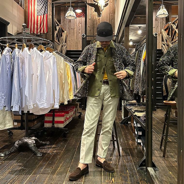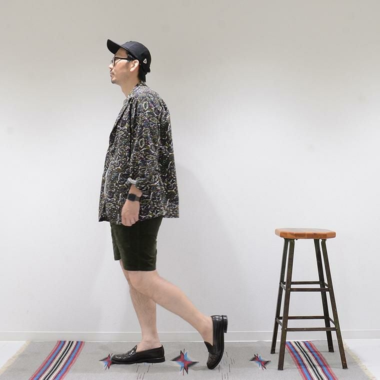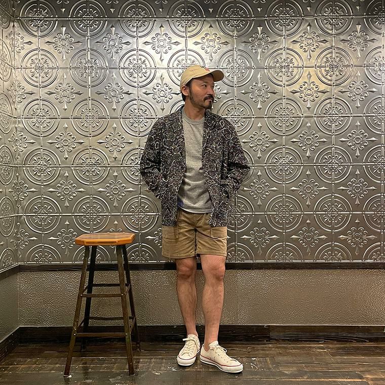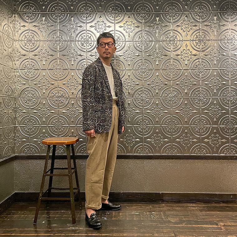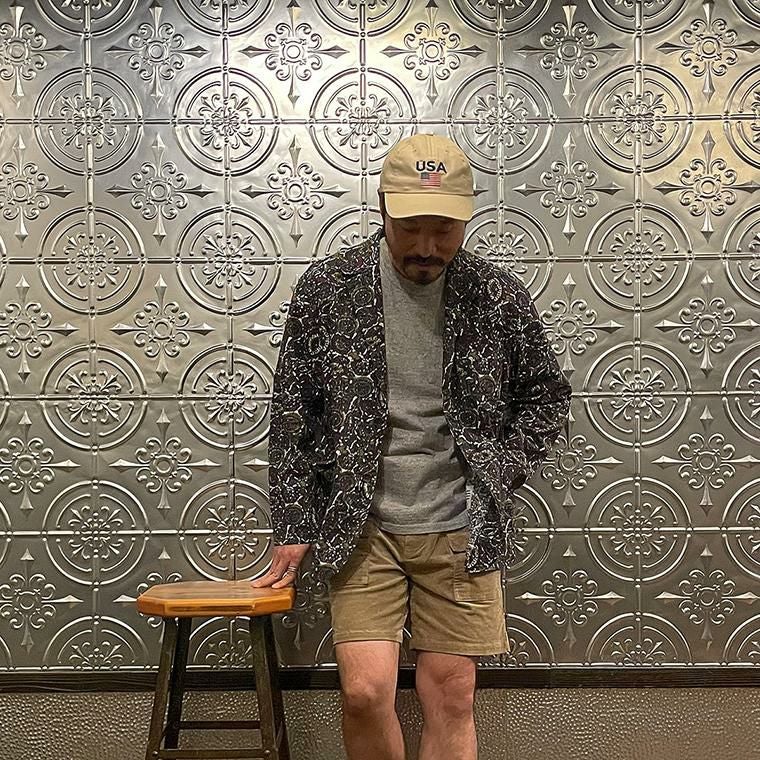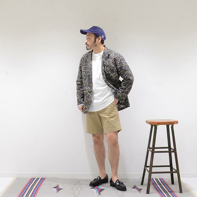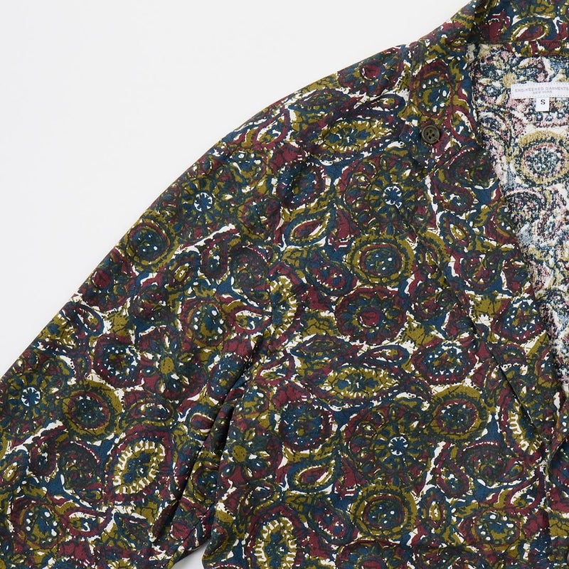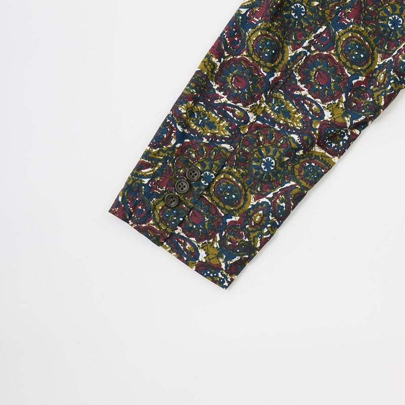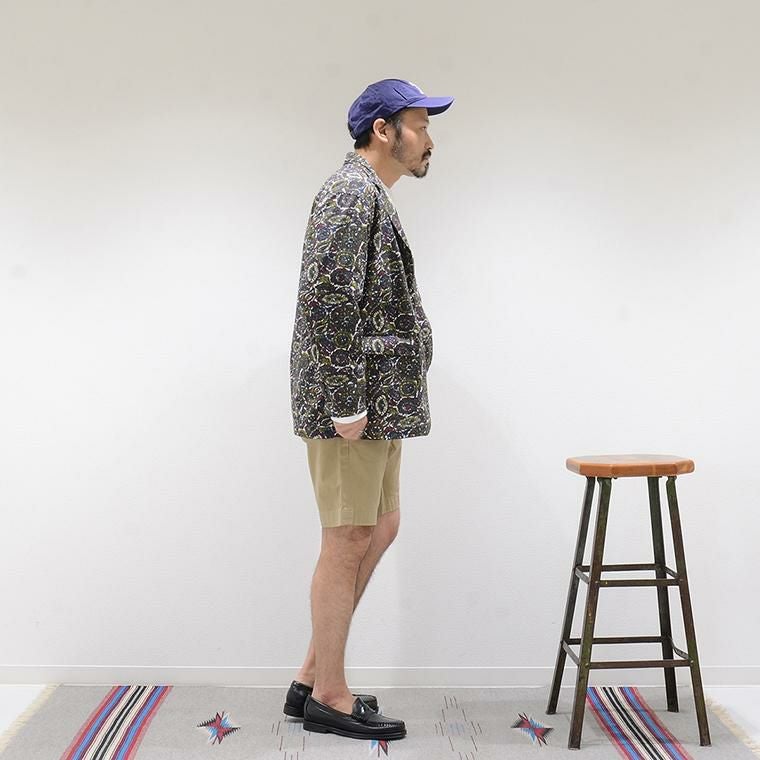 ENGINEERED GARMENTS(エンジニアド ガーメンツ)のLOITER JACKET COTTON BATIK。今シーズンのコレクションを象徴するバティックプリント素材を使用したロイタージャケット。襟にはストラップが付けられ、ラペルを寝かせればテーラード、立てればマオカラーにできる仕様のジャケット。フロントはパッチポケットが3つ付き、バックはノーベントでウエストにシルエット調整のできるアジャスターボタンを装備。ジャケットとシャツの中間のような仕上がりのアイテム。バティックプリントがシンプルなスタイリングのアクセントになってくれる1着です。