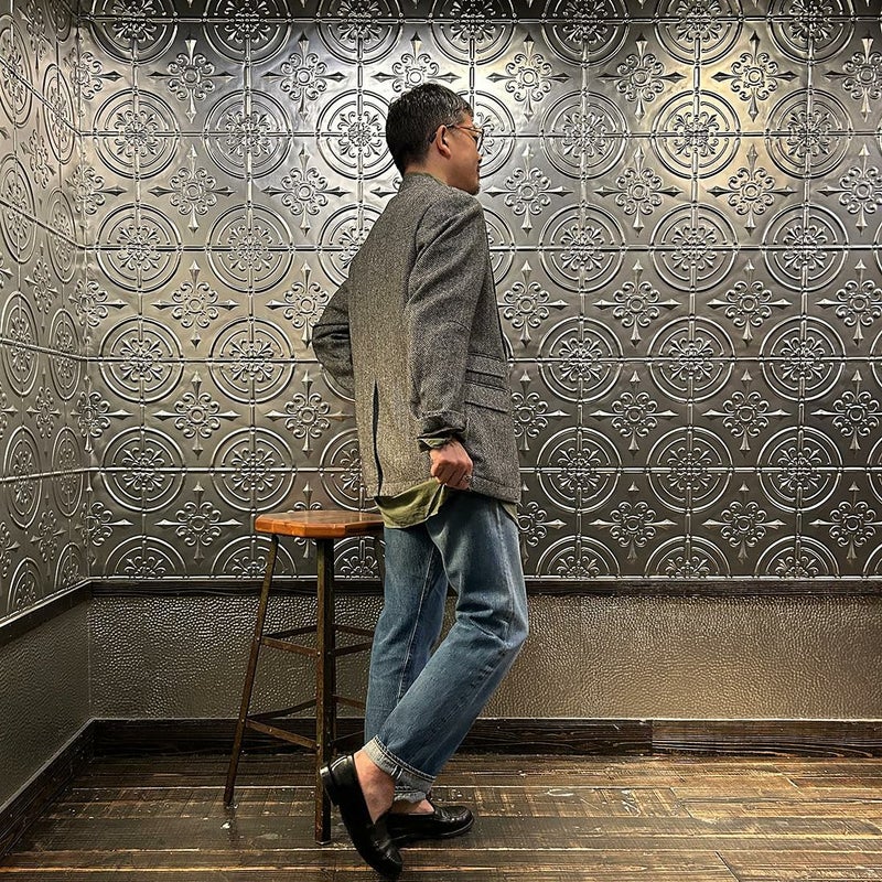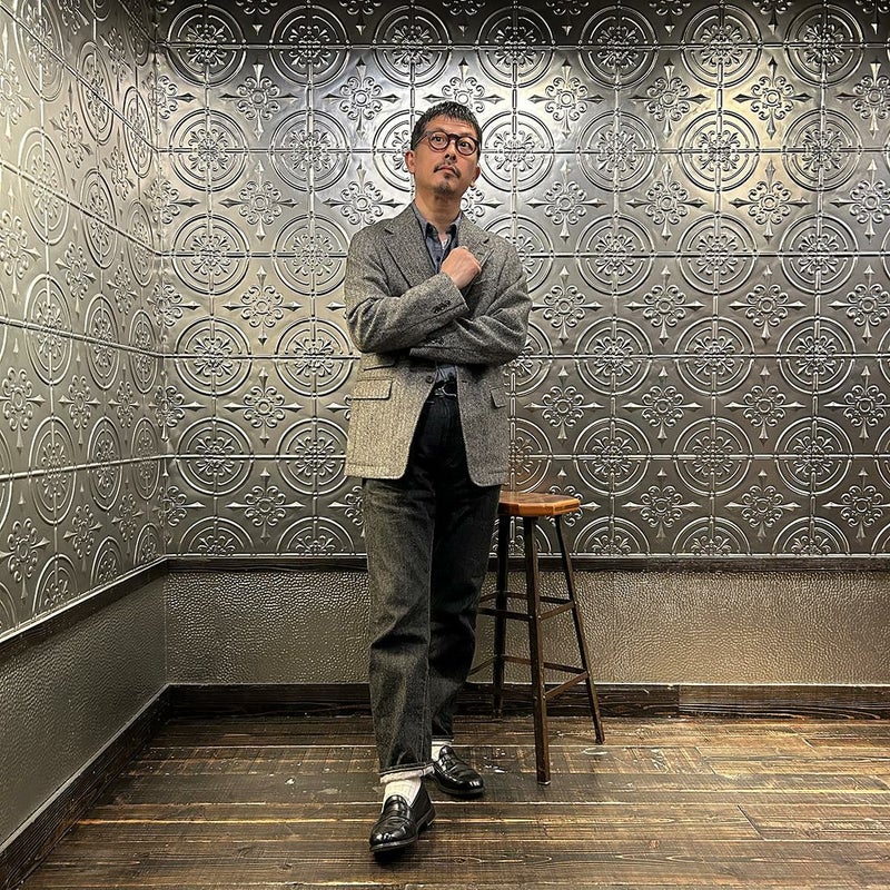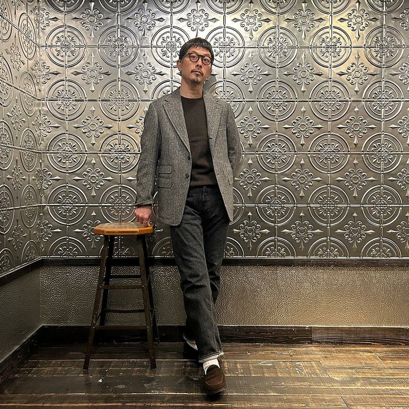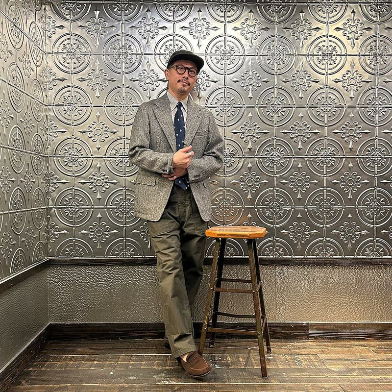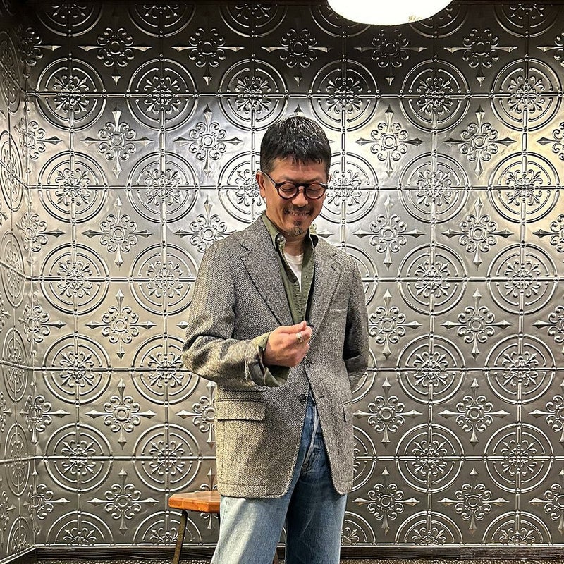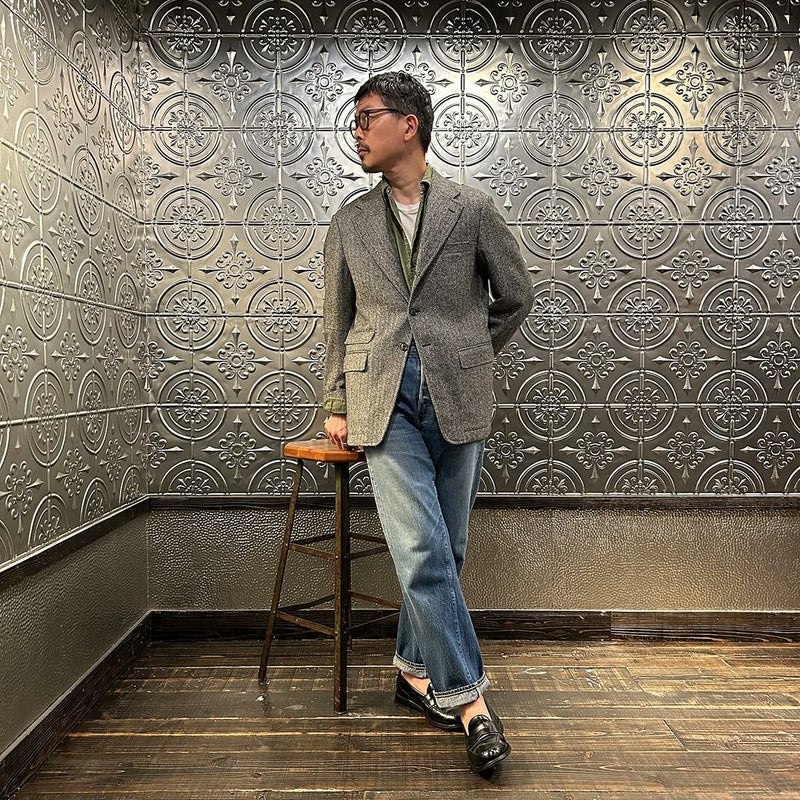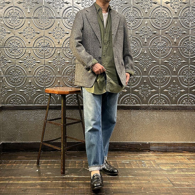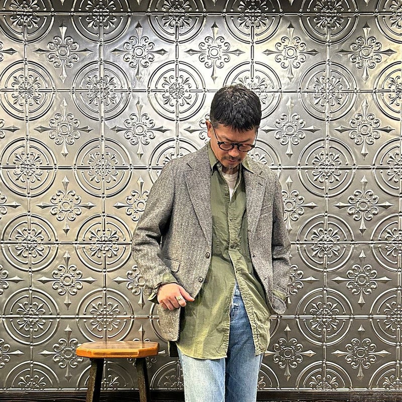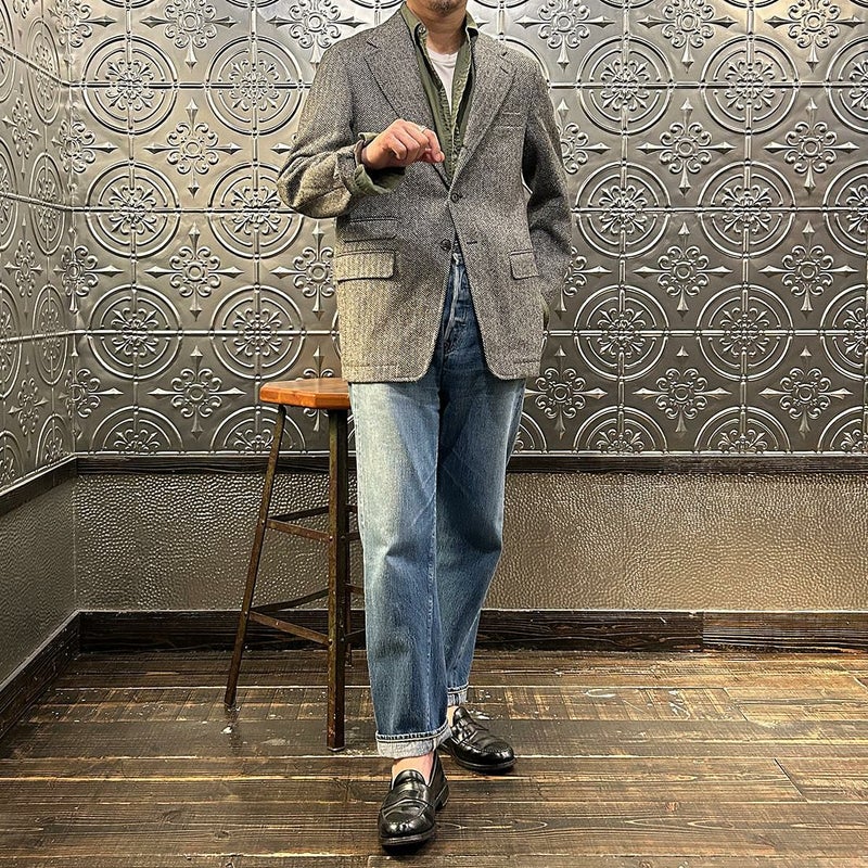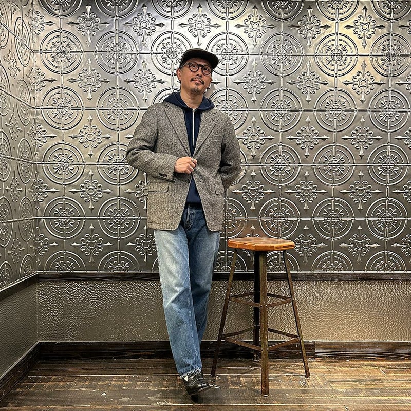 国内ブランド「D.C. WHITE」(ディーシーホワイト)のHACKING JACKET HERRINGBONE。英国乗馬の歴史と共に発達したスポーツディティールのツイードジャケット「ハッキングジャケット」がデザインソース。肩から肩甲骨に向かう部分、肘内側部分にはダーツを施し、シルエット以上にスポーツジャケットとしての広い可動域を確保。斜めになったスラントポケット仕様、チェンジポケット付きの英国ディテール。なだらかなラインを強調するラペルのロールやナチュラルなショルダーライン、質の高い仕立てをほのめかす首元に吸い付くような襟づくり、きつすぎないウエストシェイプなどD.C. WHITE(ディーシーホワイト)の拘りが詰まった完成度の高いジャケット。素材には180年以上の歴史を持つ英国 アブラハム・ムーン社のツイードクロスを使用。軽量かつ、綺麗な発色と柄が特徴。