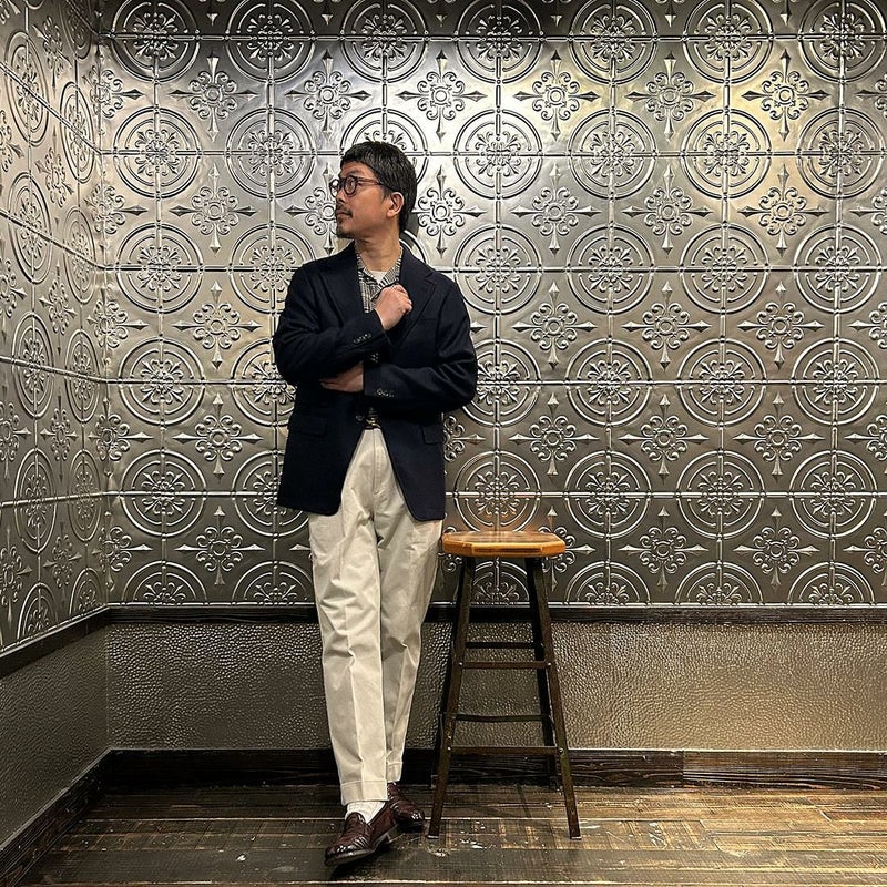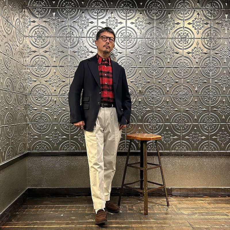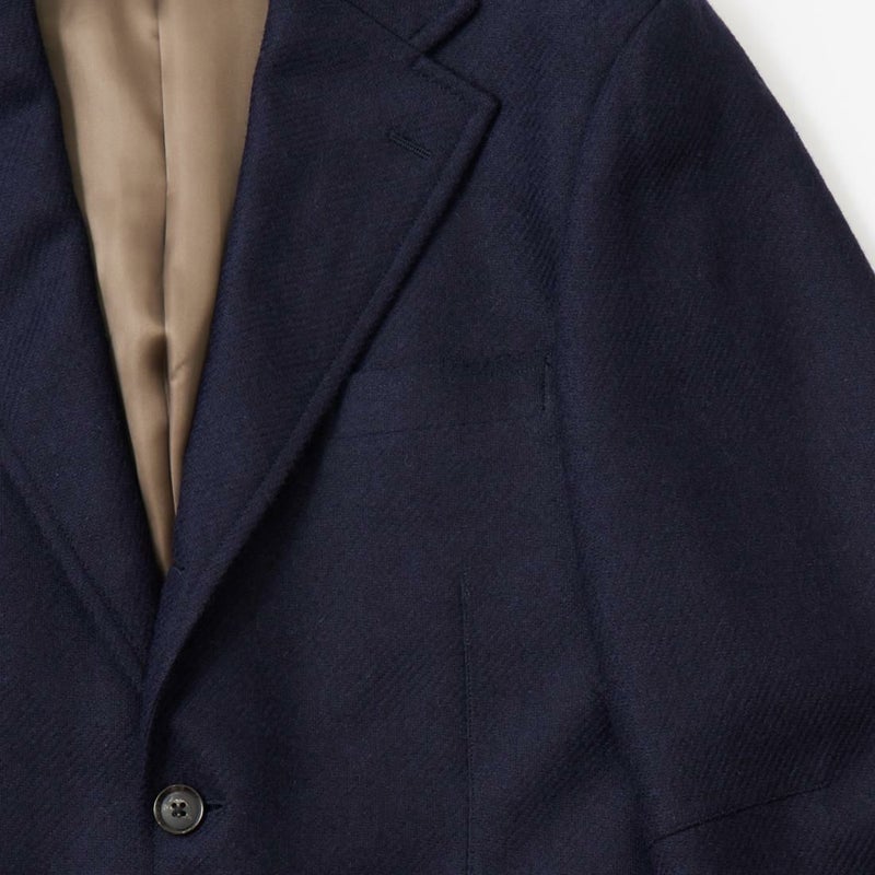 国内ブランド「D.C. WHITE」(ディーシーホワイト)のHACKING JACKET TWEED。英国乗馬の歴史と共に発達したスポーツディティールのツイードジャケット「ハッキングジャケット」がデザインソース。肩から肩甲骨に向かう部分、肘内側部分にはダーツを施し、シルエット以上にスポーツジャケットとしての広い可動域を確保。斜めになったスラントポケット仕様、チェンジポケット付きの英国ディテール。なだらかなラインを強調するラペルのロールやナチュラルなショルダーライン、質の高い仕立てをほのめかす首元に吸い付くような襟づくり、きつすぎないウエストシェイプなどD.C. WHITE(ディーシーホワイト)の拘りが詰まった完成度の高いジャケット。素材には180年以上の歴史を持つ英国 アブラハム・ムーン社のツイードクロスを使用。軽量かつ、綺麗な発色と柄が特徴。