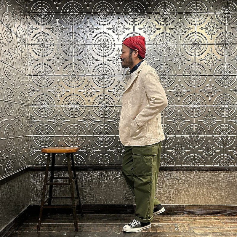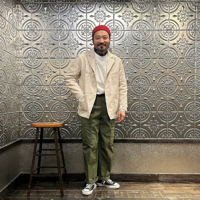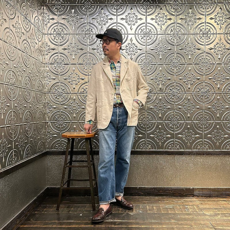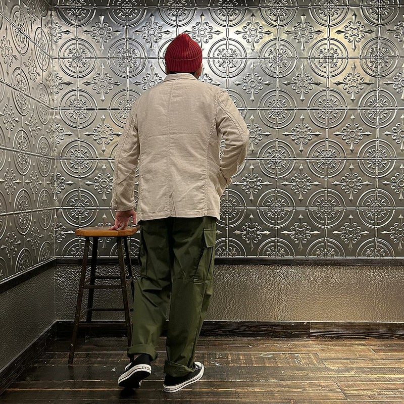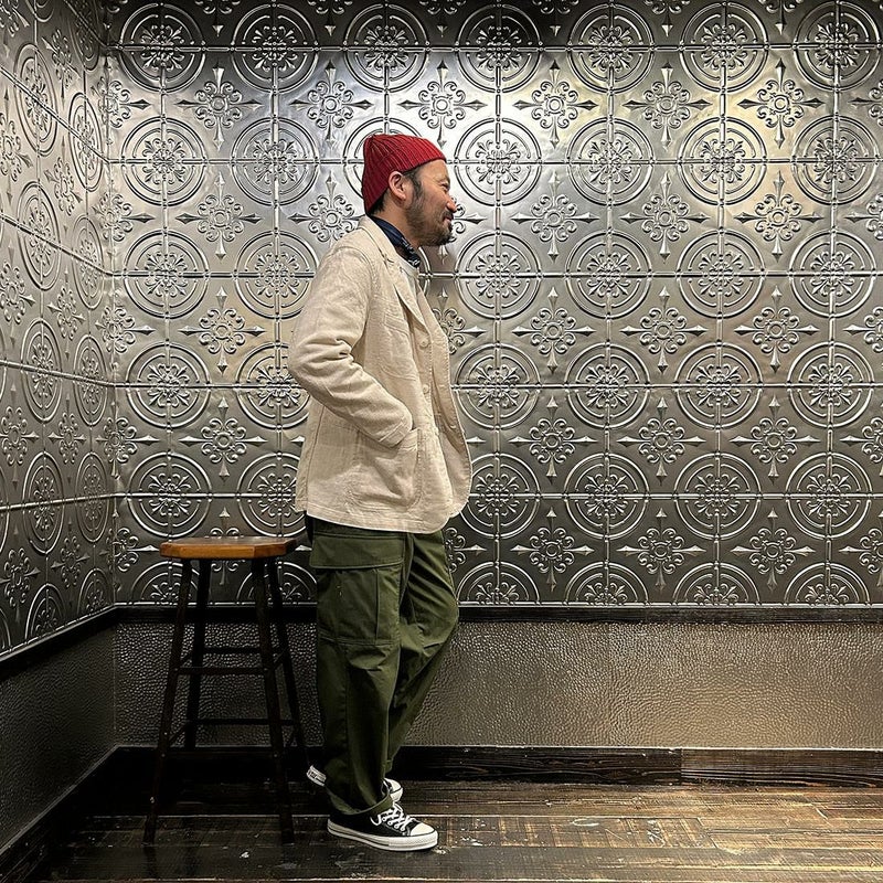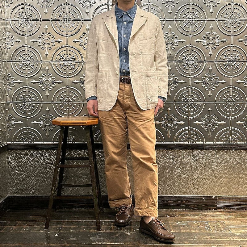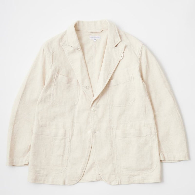 ENGINEERED GARMENTS(エンジニアド ガーメンツ)のBEDFORD JACKET CL JAVA CLOTH。凹凸感とドライな風合いが特徴のジャバクロスを使用したベッドフォードジャケット。襟裏にジグザグステッチを施したピークドラペルにチェンジボタンを採用した3つボタンタイプ。フロントはワークの要素を加えた4つのパッチポケットを配し、内側にも2つの内ポケットが付きます。テーラードジャケットとカバーオールジャケットの間のようなデザインとサイズ感。太めから細身、ジーンズからスラックスまで、多種多様なパンツとの合わせを楽しめる万能ジャケット。
