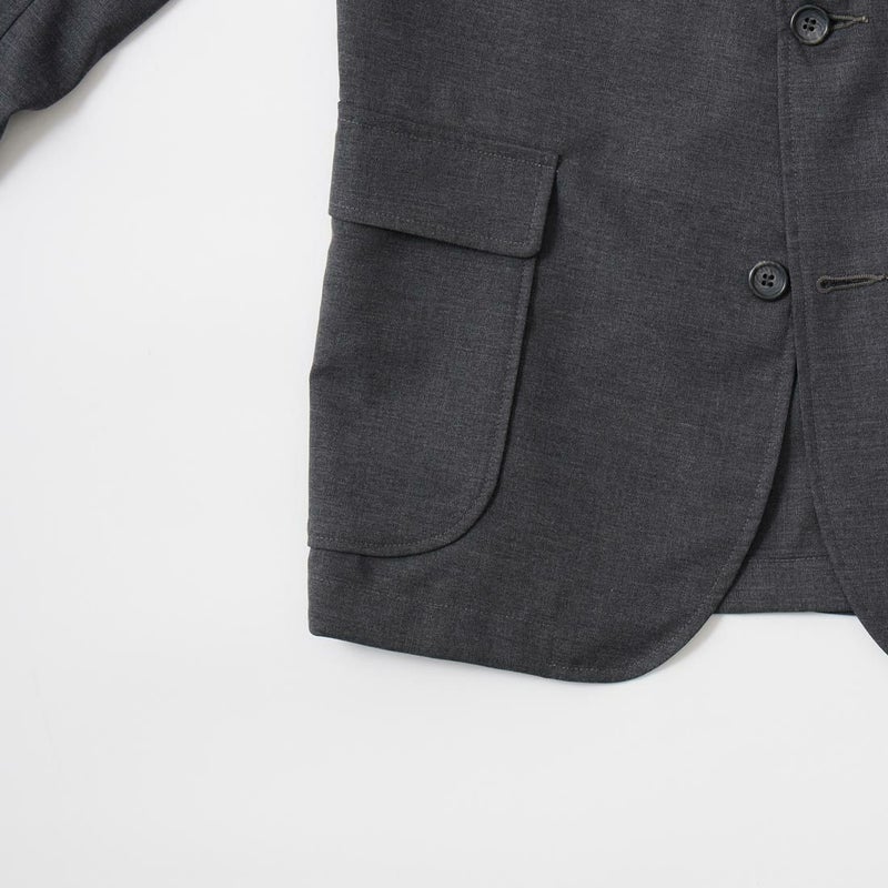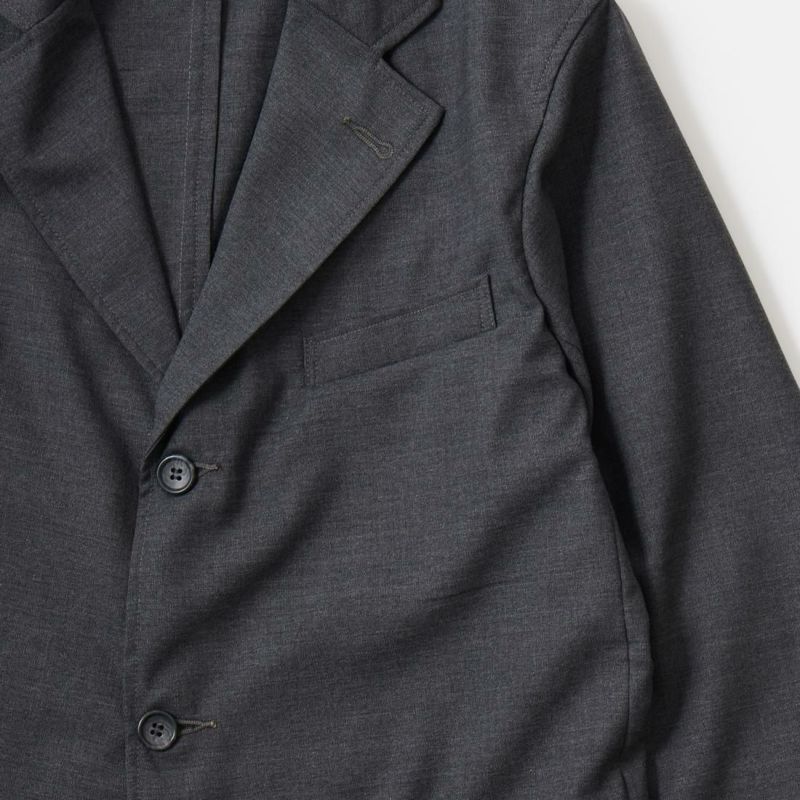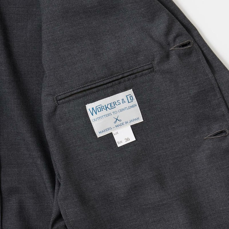 WORKERS(ワーカーズ)のIVY BLAZER COMBAT WOOL TROPICAL。バッグなどに使われる丈夫なコーデュラナイロンをウールと一緒に紡績した糸で織られた「コンバットウール」を使用したアイビーブレザー。3つボタンで上2つ掛け。胸箱ポケット。腰、パッチ&フラップ。センターベント。襟・ラペル1/4インチ・ミシンステッチ。身頃裏無し、袖裏有り。これぞアイビーなディテール。摩耗に非常に強く、皺にもなりにくいコンバットウール。夏場のジャケットとして最高な1着。