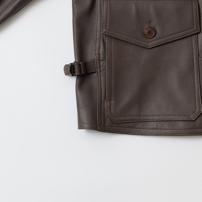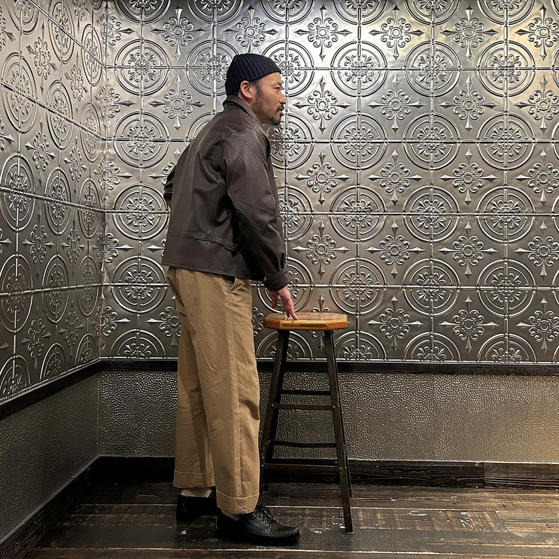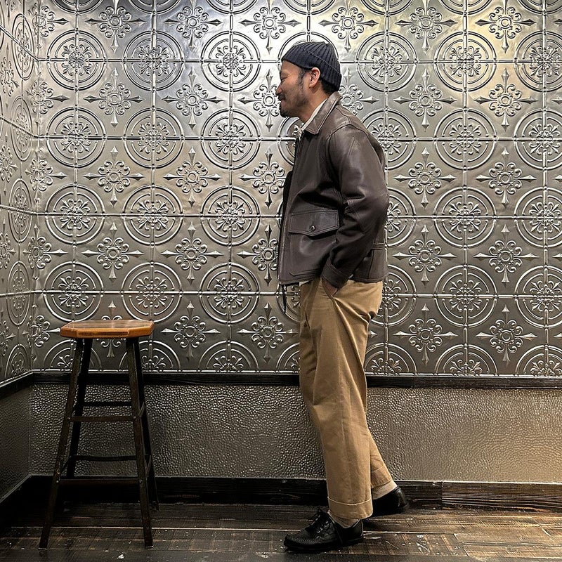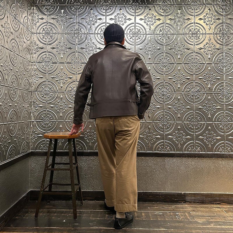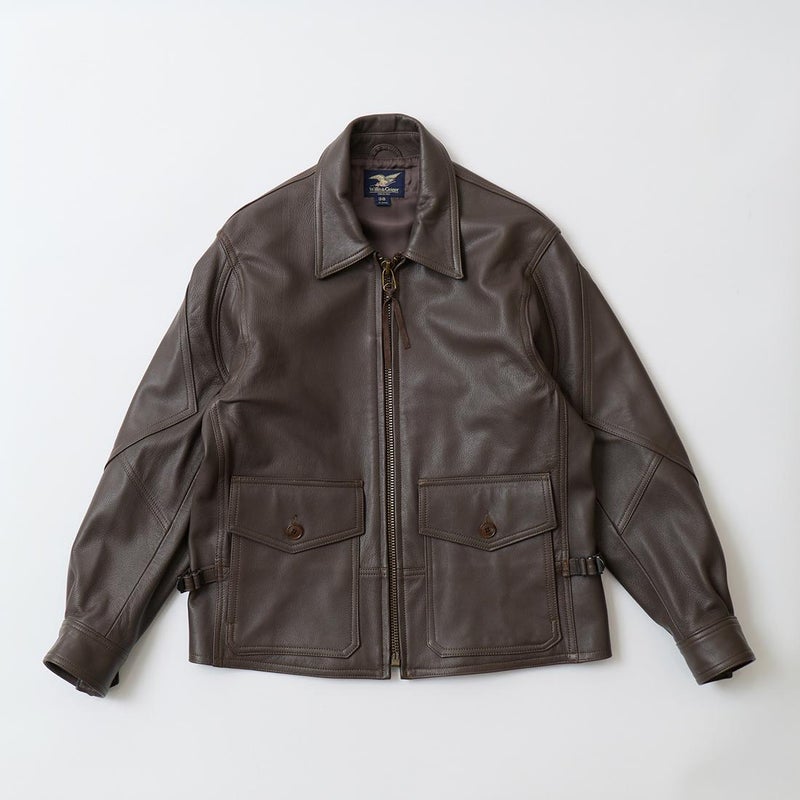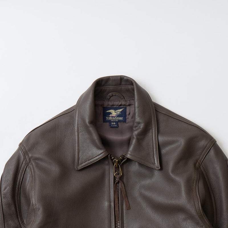 WILLIS & GEIGER(ウィリスアンドガイガー)のG8 OPEN COCKPIT FLIGHT JACKET GOATSKIN。ゴートスキン(ヤギ革)を使用したレザージャケット「G8」。「G8」はUSネイビーで1931年から1938にかけて採用されていたオープンコクピット用のフライトジャケット。1920年代に着用されていたM440に代わるフライトジャケットとしてM440の4と4を足した数字の8と政府支給を表すGovernment Issueの頭文字Gを組み合わせたのがG8の由来。脇下には立体的なマチを施し、ベンチレーションホールも装備。フロントの左右のポケットは2重構造になっており、サイドからも手を入れる事ができる嬉しい仕様。両脇にはアジャスターを装備し着用時のフィッティング力をアップ。狭いコクピットの居住性の悪さから肘から上腕部にダイアモンド型の補強。袖口のジップはグローブの脱着を助ける役割。フロントジップ裏の風防フラップは風よけの為の実用性の為。首元までないのはスカーフを巻く為の配慮。全てのディテールに意味を持つミリタリーのデザインは現代においても色褪せない秀逸なモデル。赤タグ時代のオリジナルレザーを完全再現に近い状態に仕上げ、ジップはタロンを用い当時と同じ引手に拘った逸品。当時と同じようにコンピューターによるCADを使わずにマスターパターン(型紙)は手で行い自然な丸みに拘って仕上げています。【26FW Pre-Order】