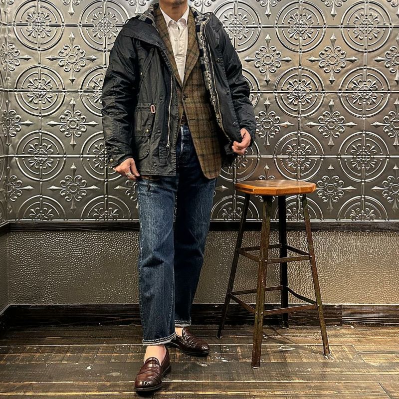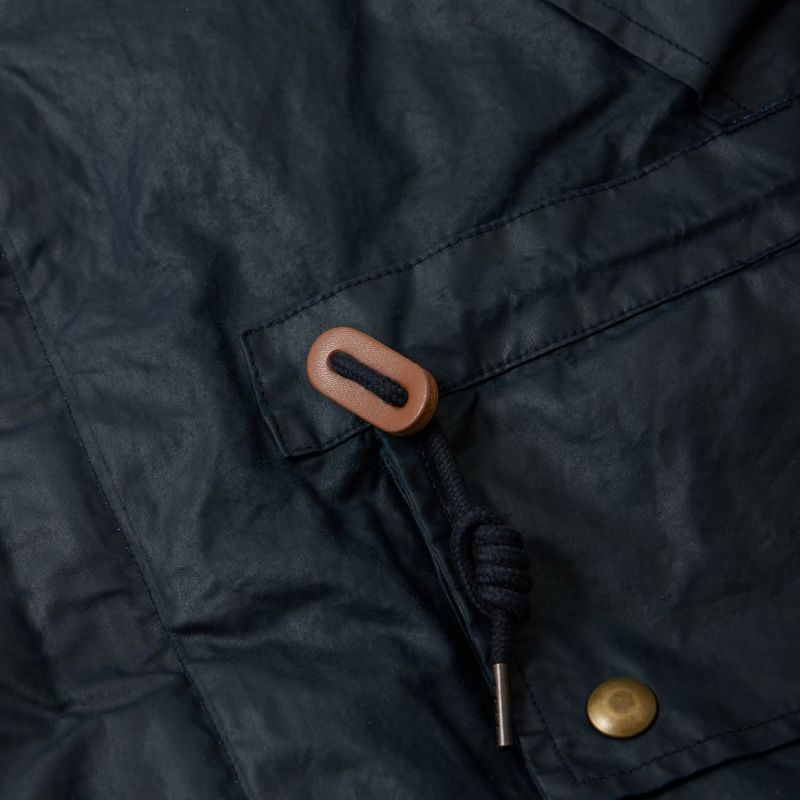 Double RL(ダブル アール エル)のTHOMPSON JKT LINED COAT COTTON OIL CLOTH。マウンテンパーカーを彷彿とさせるデザインのジャケット。レザーのストッパーが付いたドローストリング付きフード。ウエストと裾にも同様のドローストリングを装備。胸部分にはハンドウォーマーがポケット2つ。フロントウエストにスナップ付きポケットを左右に装備。ダブル アール エルらしい柄のジャカード織りクロスの裏地もいい雰囲気。素材はワックス加工を施したコットンを専門的に扱う、英国の歴史あるミルから調達したオイルクロス素材を使用した1着。