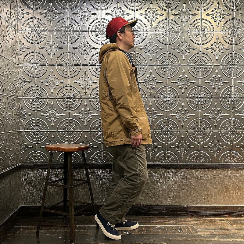 170センチ68キロで「M」で丁度良いサイズです。身幅、腕周りはゆとりがあり、着丈はやや長めに設定されたつくり。「M」サイズであれば中にヘビーなニット、スウェットはもちろん、ツイードのジャケットの上に羽織ってもストレスなく着れます。今シーズンリリースされた創立60周年記念限定モデル。気軽にガシガシ着れる60/40クロス。飽きのこない安定したサイズ感。歳を重ねても大切に着続けていきたいスペシャルな1着です。