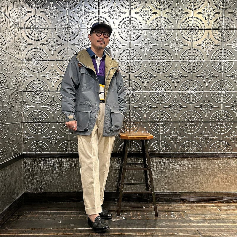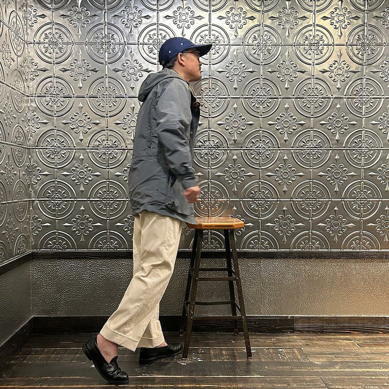 170センチ68キロで「M」で丁度良いサイズです。身幅、腕周りはゆとりがあり、着丈はやや長めに設定されたつくり。「M」サイズであれば中にヘビーなニット、スウェットはもちろん、ツイードのジャケットの上に羽織ってもストレスなく着れます。今シーズンリリースされた創立60周年記念限定モデル。気軽にガシガシ着れる60/40クロス。飽きのこない安定したサイズ感。歳を重ねても大切に着続けていきたいスペシャルな1着です。