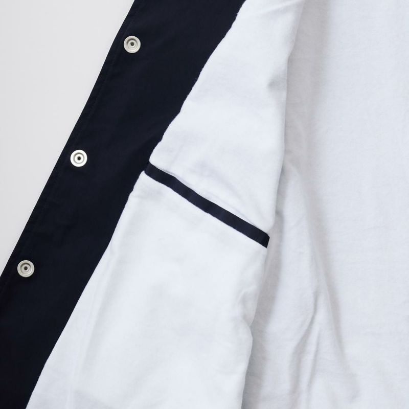 170センチ68キロやや肩幅広めの私の体型でサイズ選びは38サイズで丁度良い着用感です。この23秋冬シーズンから以前のフィットとは違ってゆったりとしたつくりのクラシックフィット仕様に変更。なので、38サイズでもインナーに地厚めのパーカーやスウェットを着てもゆったりとした着用感で羽織れます。アメカジ、スポーツスタイル好きな方にはオススメしたくなるアイテム。中にガッツリ着込めば冬でも着れますし、シャツやカットソーぐらいの軽めのアイテムを着て羽織るぐらいでしたら涼しい時期でも着れますからね。そういう意味では長いシーズン重宝して頂ける1着ですね。