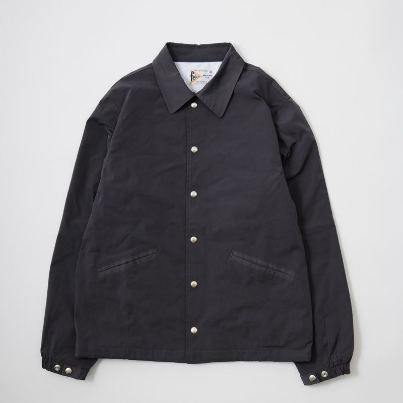 FELCO(フェルコ)のSET IN SLEEVE COACH JACKET SNAP BUTTON FRONT W/FLANNEL LINING CLASSIC FIT。撥水性を持つウォータープルーフナイロンを使用したスナップフロントのコーチジャケット。襟は大きめで風防のチンストラップが付属。ポケットはフロントに2つと、内ポケット2つ、そして背面右側にはデザインとしてもポイントになるポケットを配置。裏地にはコットンフランネルのライニングが付き、袖口はスナップでサイズ調整が可能なゴム仕様。こちらは従来のモデルよりも全体的にゆとりを持たせたクラシックフィット。ストレスのない着用感で重ね着もし易いコーチジャケットに仕上がっています。