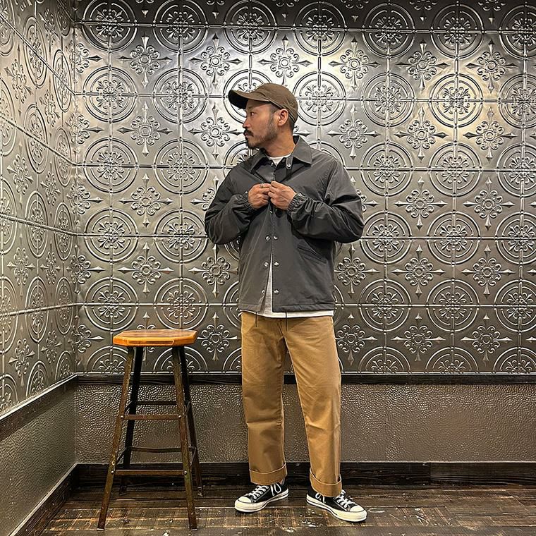 170センチ68キロやや肩幅広めの私の体型でサイズ選びは38サイズで丁度良い着用感です。この23秋冬シーズンから以前のフィットとは違ってゆったりとしたつくりのクラシックフィット仕様に変更。なので、38サイズでもインナーに地厚めのパーカーやスウェットを着てもゆったりとした着用感で羽織れます。アメカジ、スポーツスタイル好きな方にはオススメしたくなるアイテム。中にガッツリ着込めば冬でも着れますし、シャツやカットソーぐらいの軽めのアイテムを着て羽織るぐらいでしたら涼しい時期でも着れますからね。そういう意味では長いシーズン重宝して頂ける1着ですね。