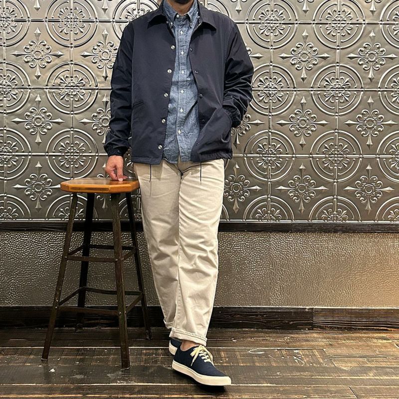 170センチ68キロやや肩幅広めの私の体型でサイズ選びは38サイズで丁度良い着用感です。この23秋冬シーズンから以前のフィットとは違ってゆったりとしたつくりのクラシックフィット仕様に変更。なので、38サイズでもインナーに地厚めのパーカーやスウェットを着てもゆったりとした着用感で羽織れます。アメカジ、スポーツスタイル好きな方にはオススメしたくなるアイテム。中にガッツリ着込めば冬でも着れますし、シャツやカットソーぐらいの軽めのアイテムを着て羽織るぐらいでしたら涼しい時期でも着れますからね。そういう意味では長いシーズン重宝して頂ける1着ですね。