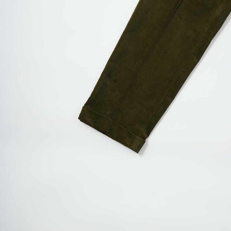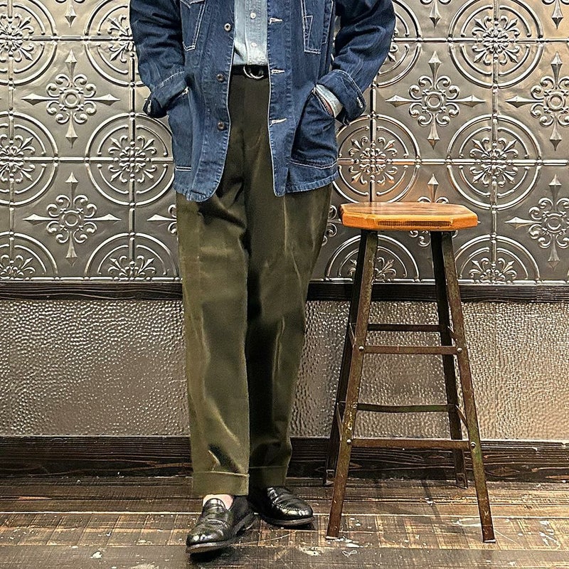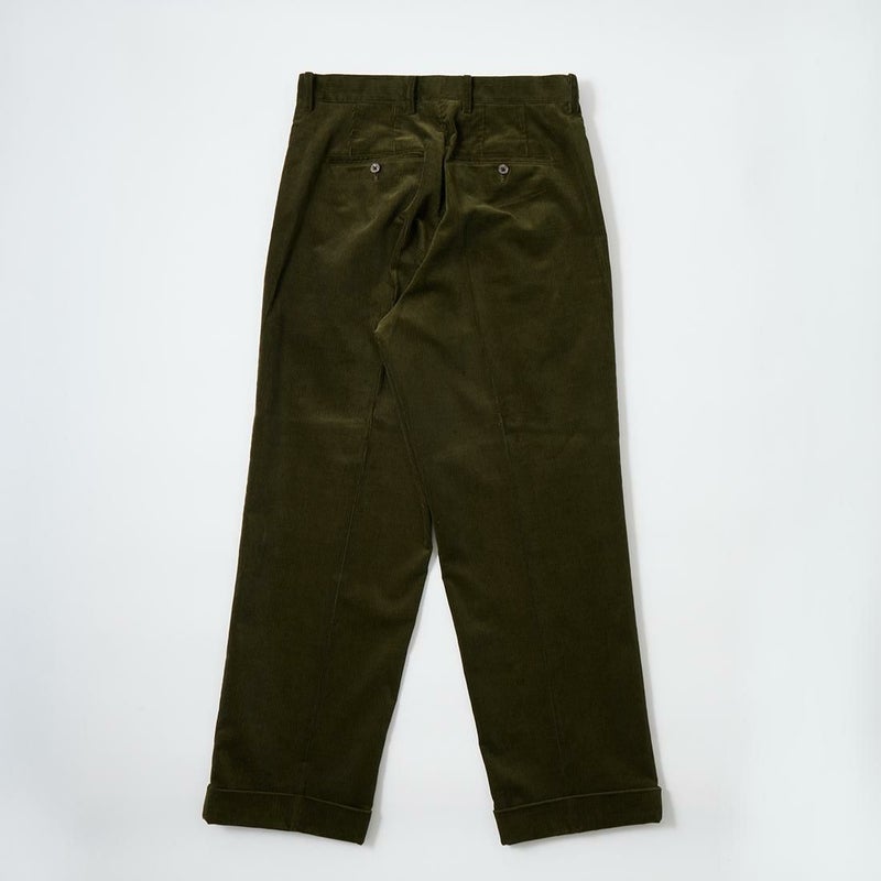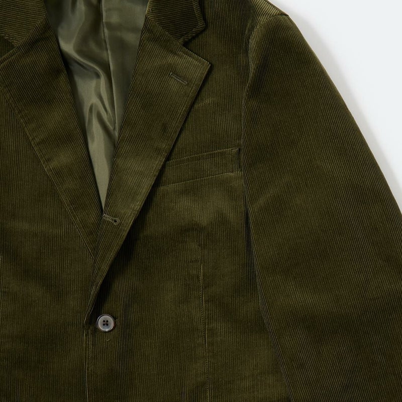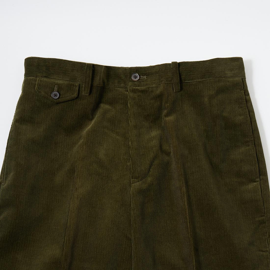 国内ブランドD.C. WHITE(ディーシーホワイト)のBOSTON CORDUROY SUITS。アメリカントラッドの源流から現在に至るまで、その変遷を理解しつつ現代的なコーデュロイスーツへと昇華させたBOSTON。日本の老舗クロージング工場で縫製。立体的なパターンによる成型、前肩に回った袖付け、裁腹のパーツを活かした前身の立体感など、細部にまで感じるこだわり。特筆すべきは肩から首回りにかけ吸い付くようにカーブを描く立ちの良い襟。これにより腕、胸回りの着用時の快適さと品格ある佇まいを両立。シルエットは1980年代後半の日本のアメリカンカジュアルをイメージ。ボトムにわずかなゆとりを持たせ、ジャケットは襟ののぼりからナチュラルショルダーへと繋がるAラインシルエット。イタリアの名門"DUCA VISCONTI"が誇る12ウェールのコーデュロイを採用。繊細な畝と美しい仕上がり、そして何よりも絶妙な色彩で目を引く素材です。