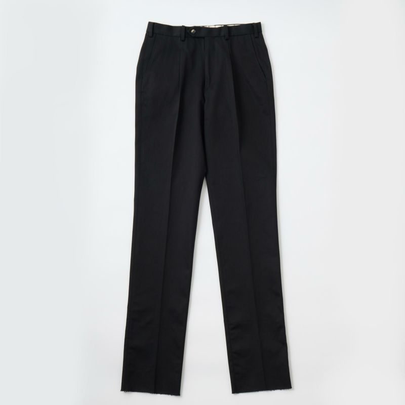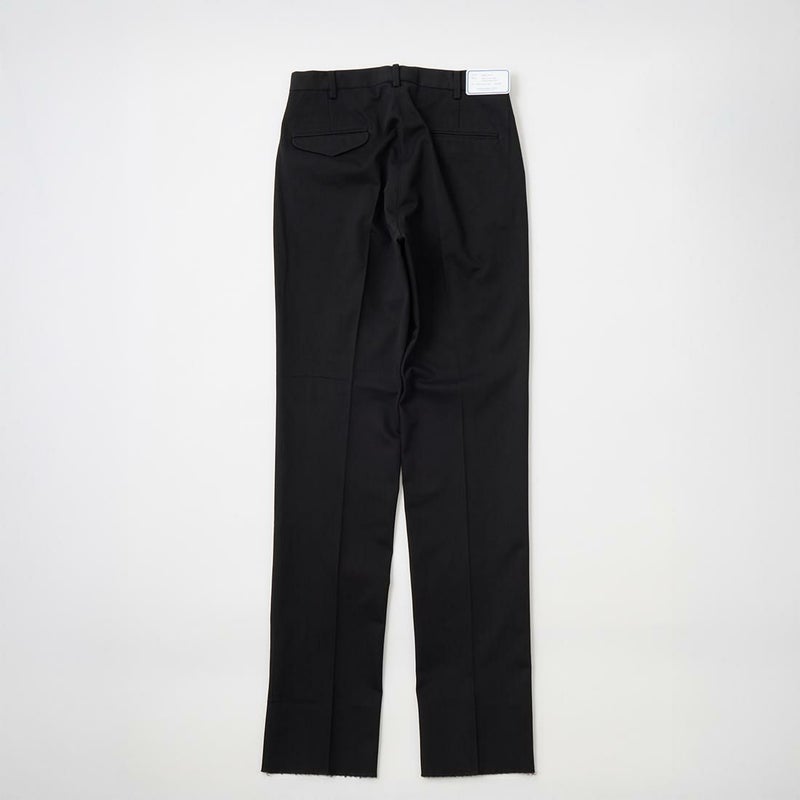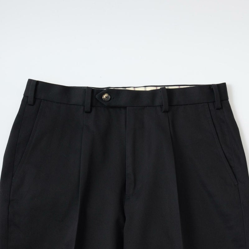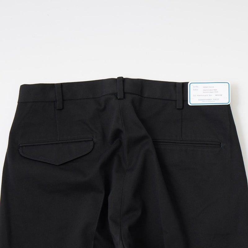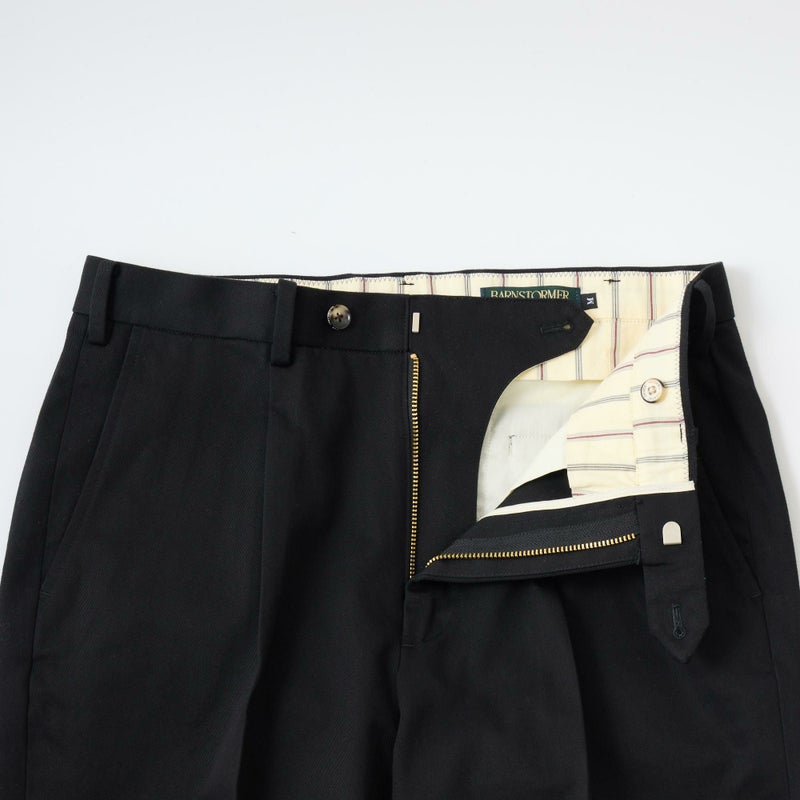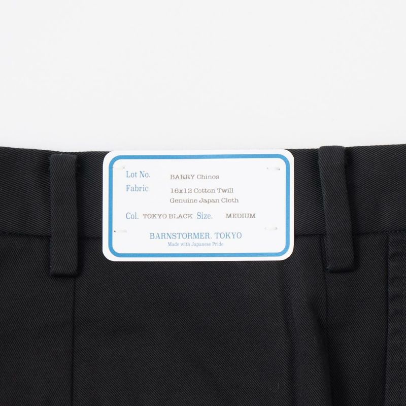 BARNSTORMER(バーンストーマー)の"BARRY" COTTON TWILL CHINO TROUSER。当店別注モデルのバリー。某アメリカの有名ブランドのチノをベースにアレンジを加えて型から完全別注。フロントはカジュアルさを演出する為にアウトタック仕様でゆとりのある腰回りに。ボトムに向かって緩やかにテーパード。股上、ワタリ、裾幅まで細かい修正を何度も繰り返した渾身の一本。着用するスタイルを選ばない穿き易いシルエット。前立てはジップフロント、バックポケットは向かって左側がフラップ付きポケット。右側はフラップなし。アメリカのチノパンブランドを彷彿とさせる紙のフラッシャーも別注のポイント。素材はコットンチノツイル。裾は裾上げされていない未処理(フラシ)状態。着用時には裾上げが必要になります。