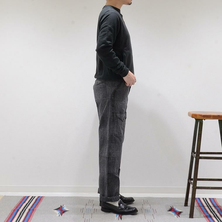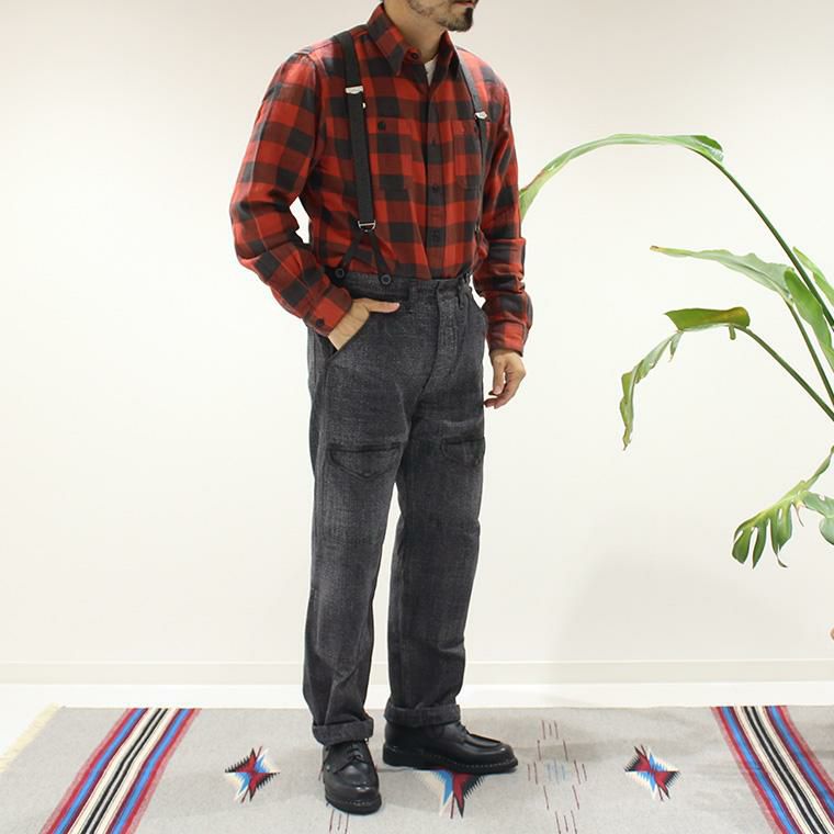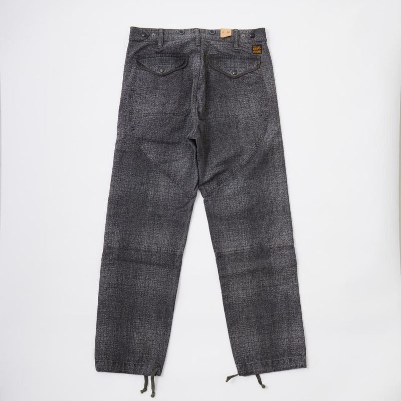 Double RL(ダブル アール エル)のREDMOND UTIL FLAT FRONT JASPE W PLAID PRINT。左右太もも部分のポケットが目を引くデザインのワークパンツ。前立てはボタンフロント、ウエストサイドにはアジャスター、サスペンダーボタンも装備。要所要所に施されたパイピングもデザインのアクセントになっています。裾にはドローコードも装備しておりシルエットのアレンジが可能です。ウォッシュ加工が施されており、既にかなり雰囲気は出ていますが更なる経年変化も楽しんで頂ける永く愛用して頂ける1本です。