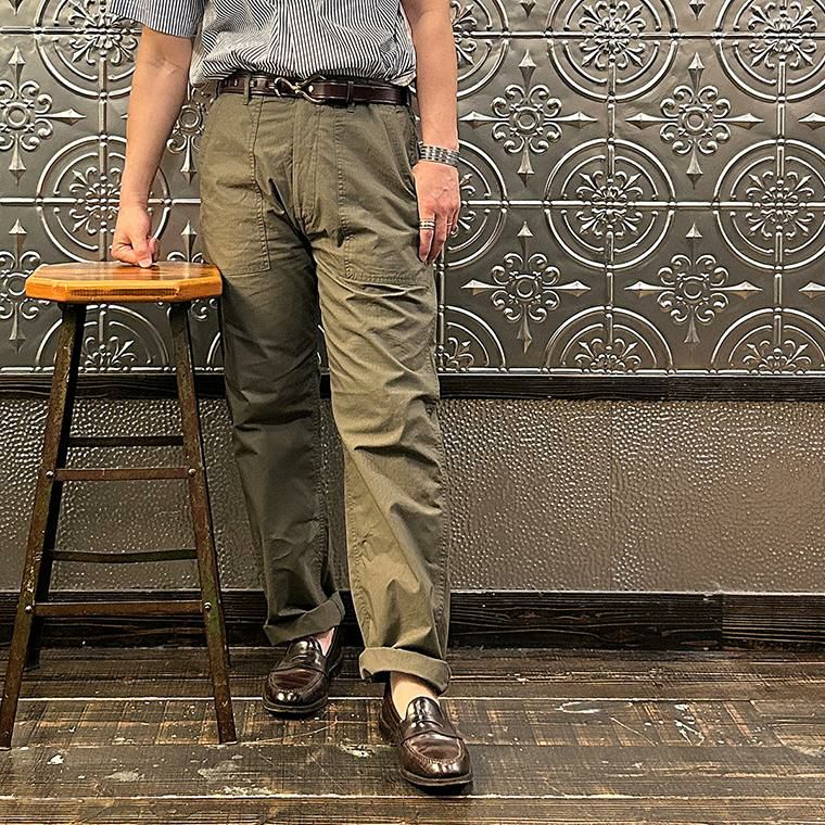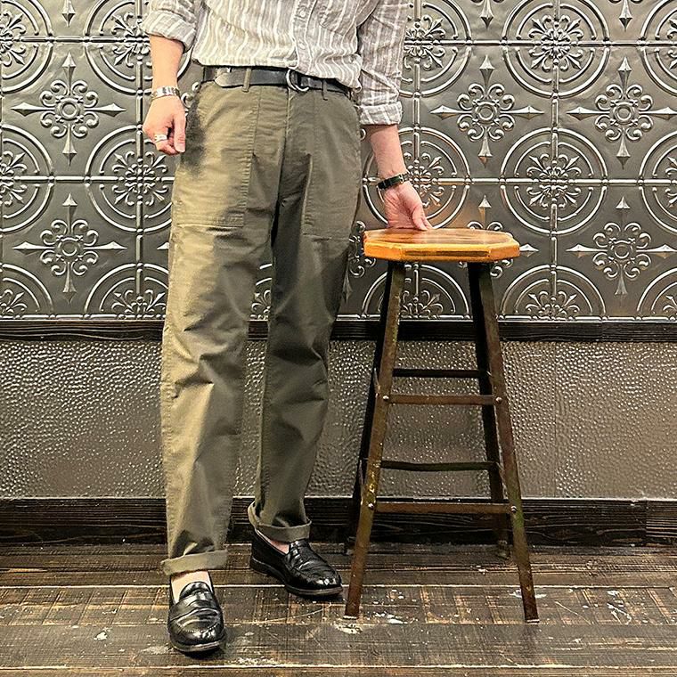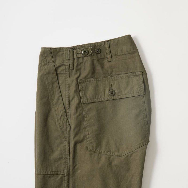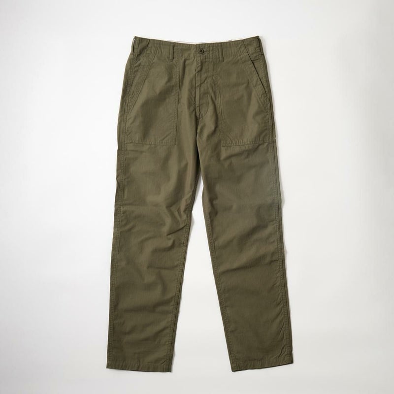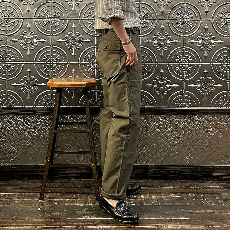 EMPIRE&SONS(エンパイアアンドサンズ)のFATIGUE PANT COTTON RIPSTOP。コットンリップストップ生地を使用したファティーグパンツ。ジップフロント仕様。フロントの大きなパッチポケットが特徴的なディテール。バックも大きめフラップポケットを装備。腰回りはややゆったり目、裾に向かって緩やかにテーパードされた綺麗なシルエット。コットンリップストップの経年変化も楽しんで頂ける1本。