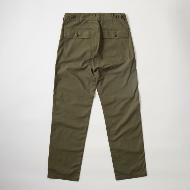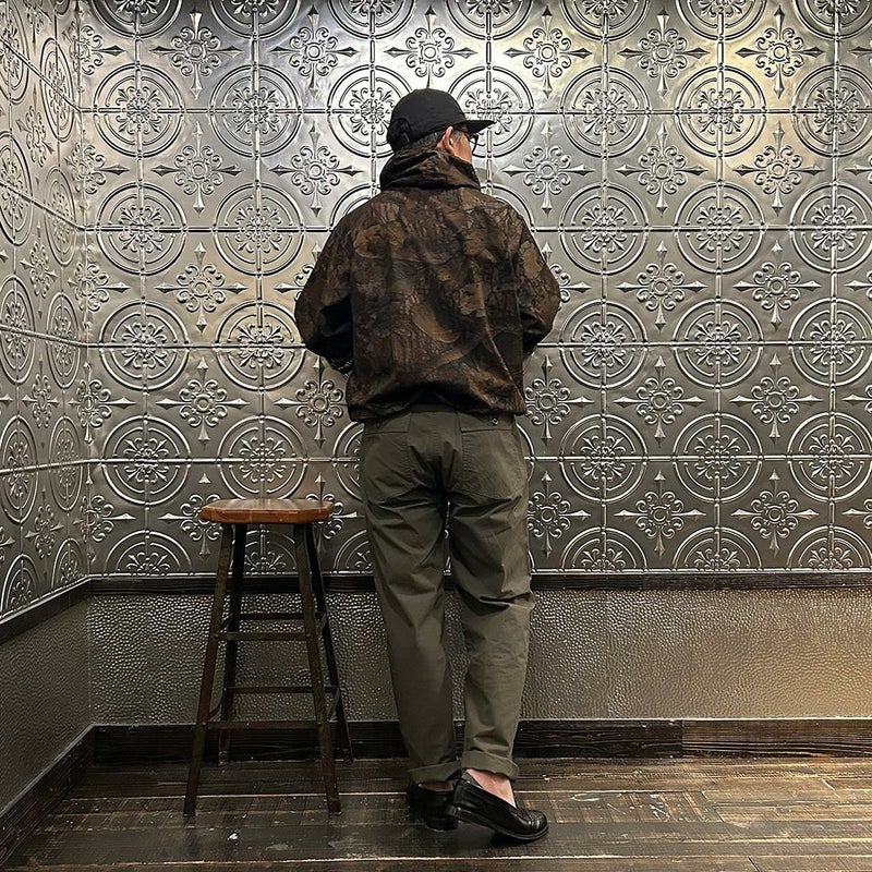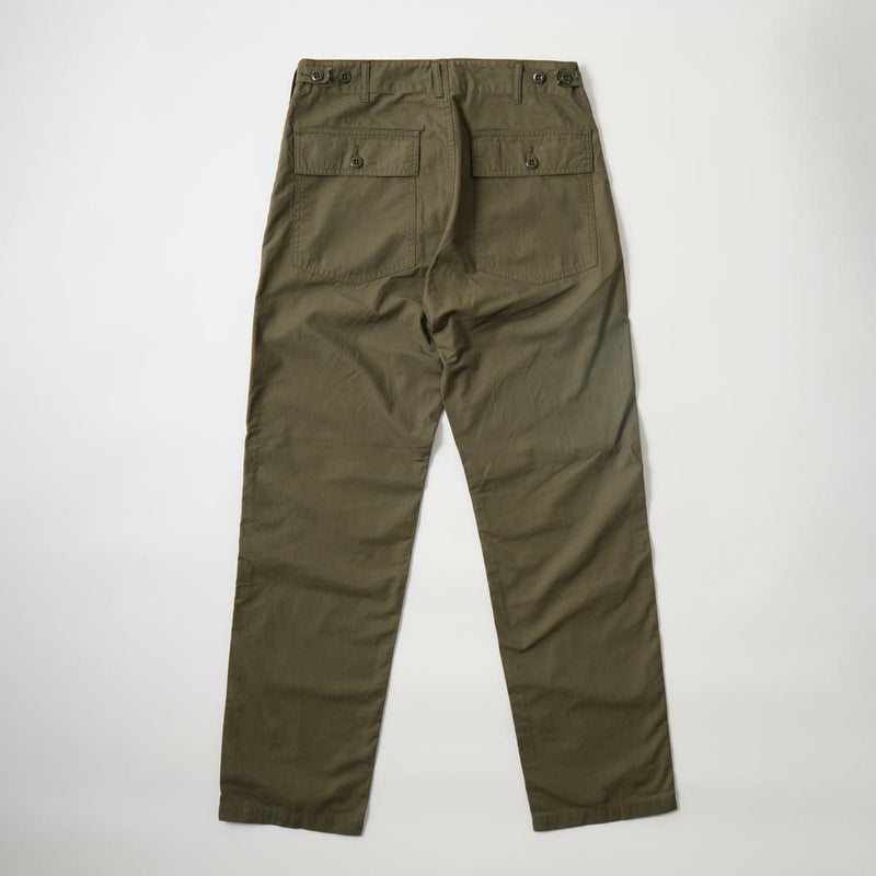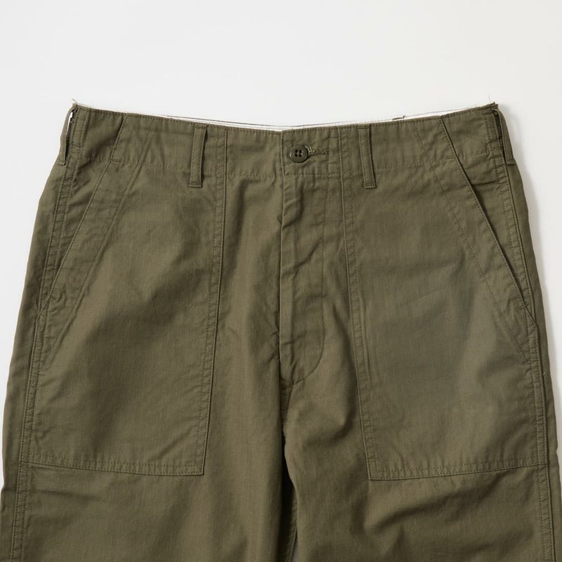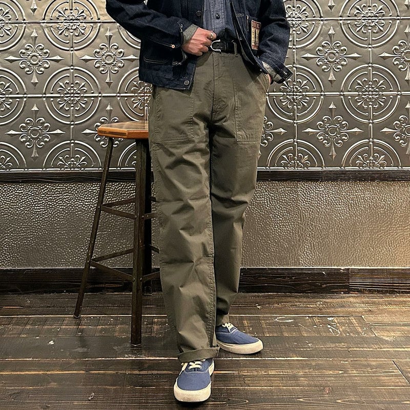 EMPIRE&SONS(エンパイアアンドサンズ)のFATIGUE PANT COTTON RIPSTOP。コットンリップストップ生地を使用したファティーグパンツ。ジップフロント仕様。フロントの大きなパッチポケットが特徴的なディテール。バックも大きめフラップポケットを装備。腰回りはややゆったり目、裾に向かって緩やかにテーパードされた綺麗なシルエット。コットンリップストップの経年変化も楽しんで頂ける1本。