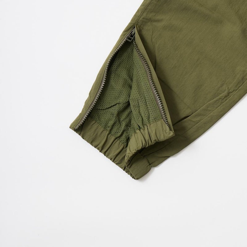 国内ブランド「D.C.WHITE ディーシーホワイト」が手掛けるスポーツウェアをフューチャーしたカテゴリー「ATLANTIC FIELD アトランティックフィールド」。そのカテゴリーからタスランナイロン製のパンツ「TRAINING PANT」がリリース。軽量で用途も広く、適度な耐久性と撥水性を併せ持つナイロン生地。裏地は肌離れも良いマイクロメッシュ生地。左腿部分に架空のスポーツクラブのロゴ刺繍。サイドポケット、バックウェルトポケット仕様。ウェストはゴムとドローコードで調整可能。裾はジップで開閉可。テーパードシルエットでいかにもスポーツウェアなルーズな印象はなくすっきりとしたキレイなライン。スポーツシーンだけでなく普段のカジュアルパンツとして着用可能なナイロンパンツ。