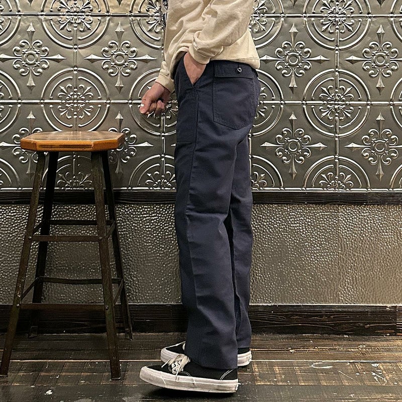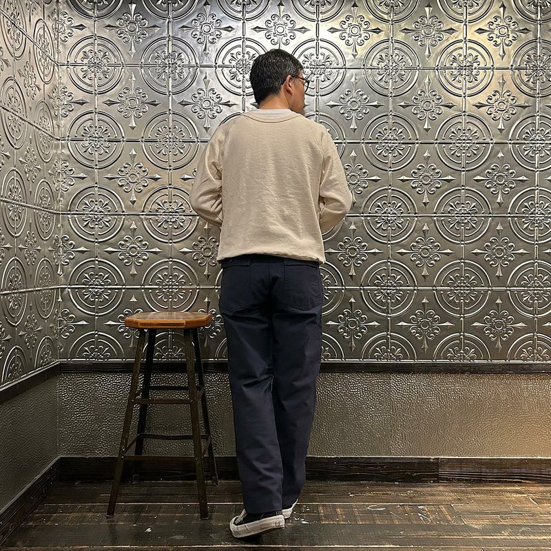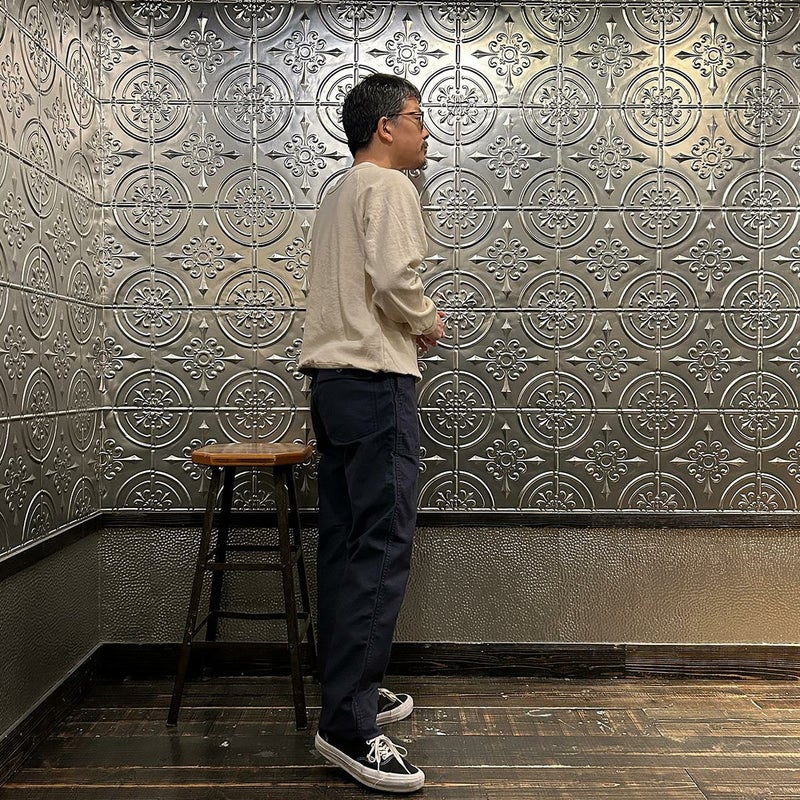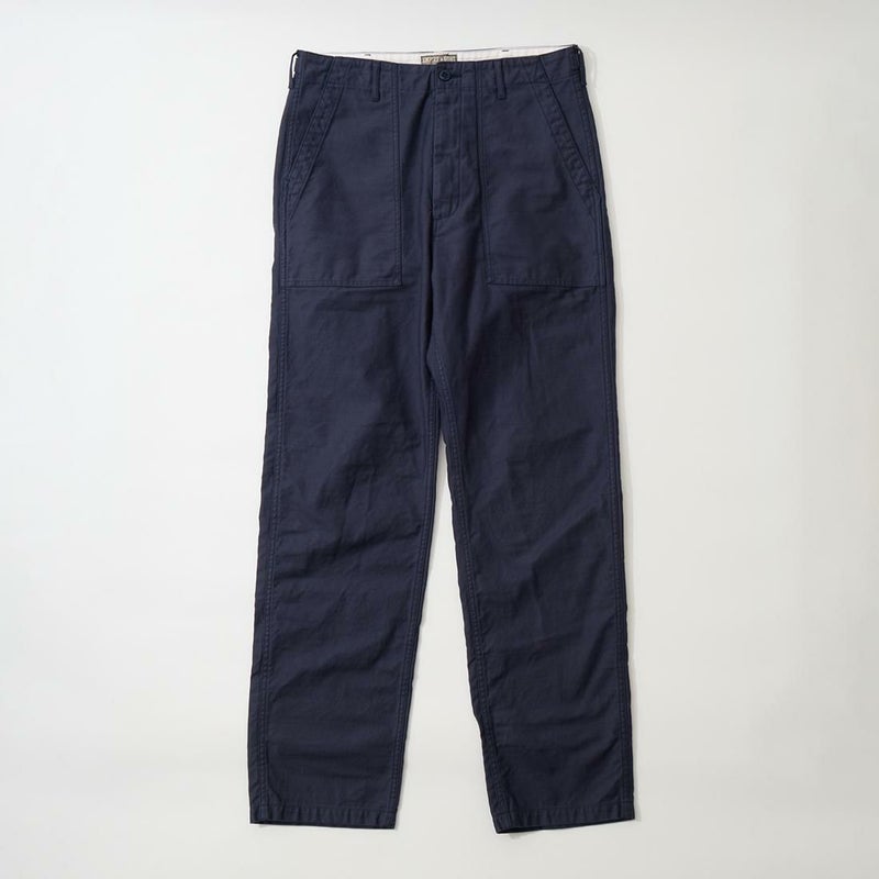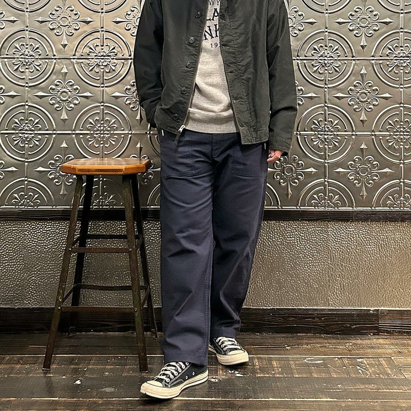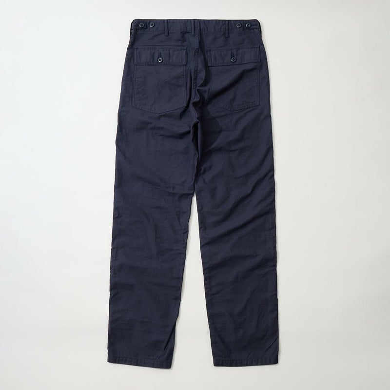 EMPIRE&SONS(エンパイアアンドサンズ)のFATIGUE PANT MILITARY SLUB BACK SATEEN。バックサテン生地をを使用したファティーグパンツ。ジップフロント仕様。フロントの大きなパッチポケットが特徴的なディテール。バックも大きめフラップポケットを装備。腰回りはややゆったり目、裾に向かって緩やかにテーパードされた綺麗なシルエット。1950-70年代、アメリカ軍のファティーグパンツに採用されえていた生地をイメージして作られたバックサテン生地。スラブ感の強い生地でエイジングも楽しみな1本。