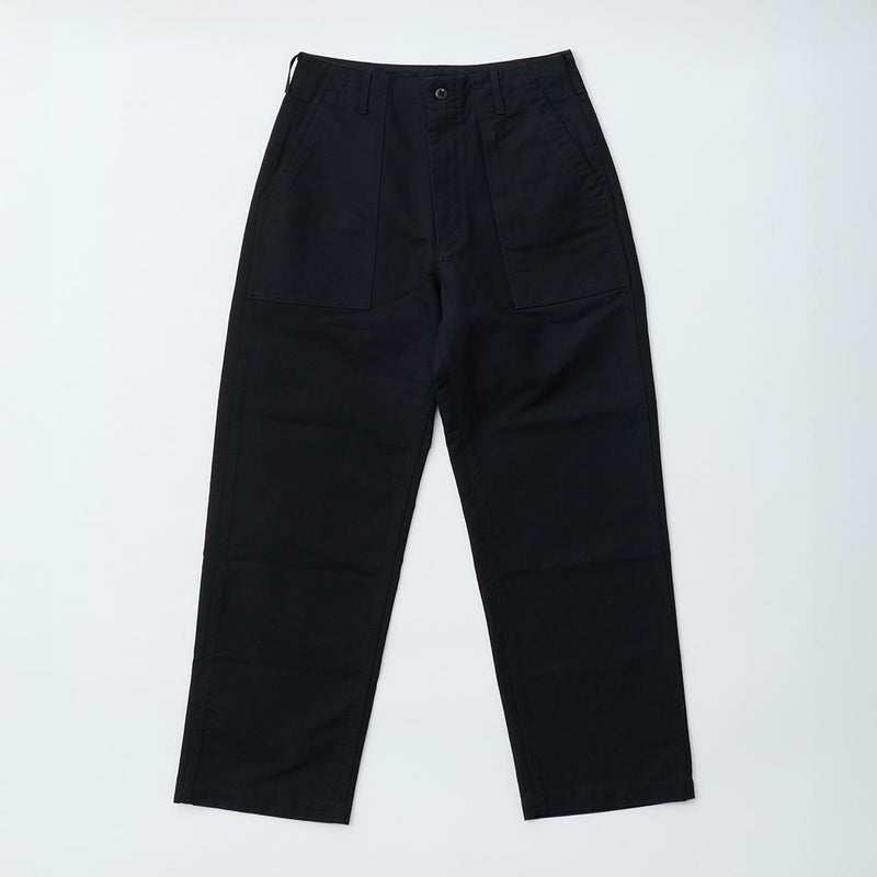 ENGINEERED GARMENTS(エンジニアドガーメンツ)のFATIGUE PANT COTTON DOUBLE CLOTH。コットンダブルクロスを使用したファティーグパンツ。フロントの大きなパッチポケットが特徴的。左ポケット部分にはジップポケットも装備。腰回りはゆったり、裾に向かってテーパードの効いたシルエット。様々なスタイリングに対応してくれる使い勝手の良いシルエット。素材はコットンダブルクロス生地。細番手のコットンを縦糸と横糸の太さを変えて高密度に織り上げることで、さらっとした滑らかさにハリとコシを持ち合わせた素材。