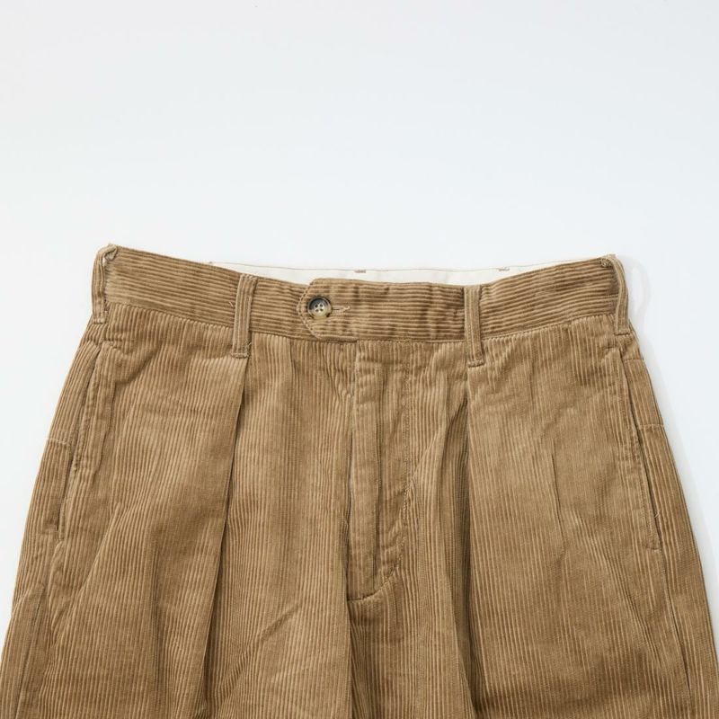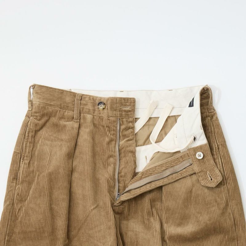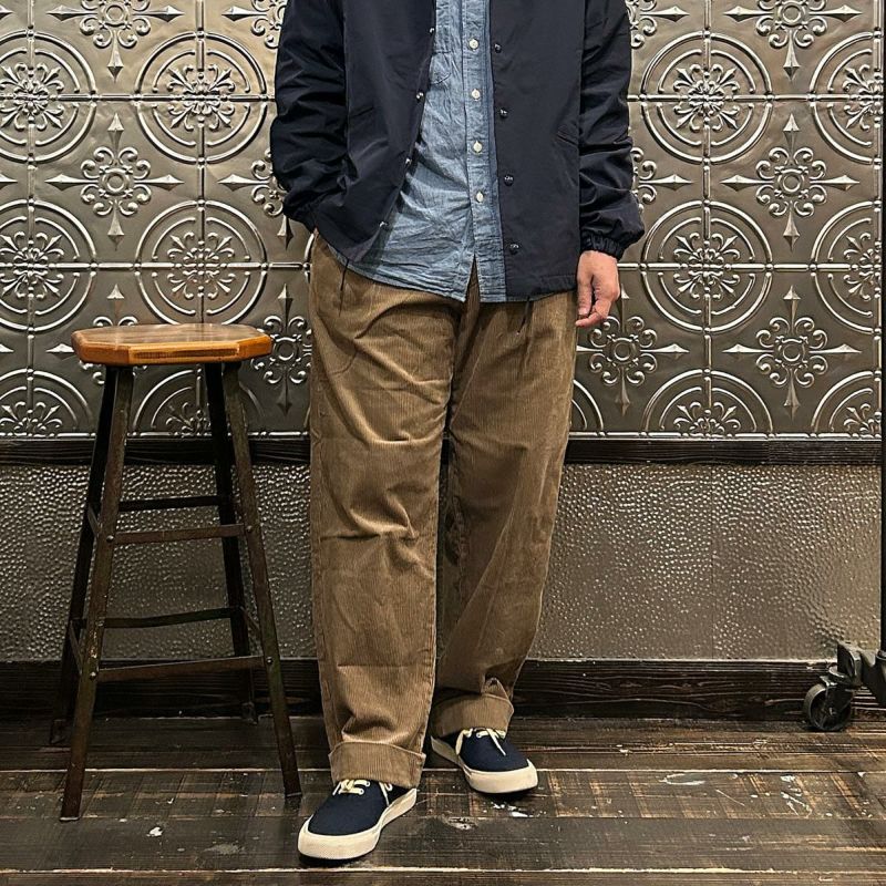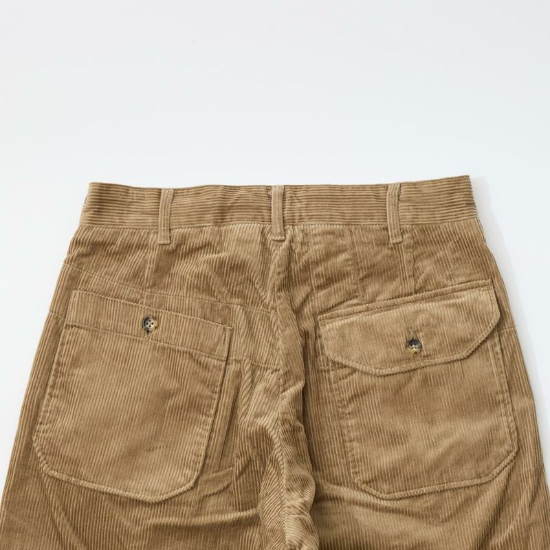ENGINEERED GARMENTS(エンジニアドガーメンツ)のCARLYLE PANT 8W CORDUROY。秋冬コレクションの定番素材コーデュロイのカーライルパンツ。英国トラディショナルを彷彿とさせる1インプリーツのトラウザース。アシンメトリーなバックポケットがアクセント。腰回りからお尻周りにかけてはゆったりとしたシルエットで裾に向かってテーパードした綺麗なシルエット。ウエストの内側にはドローコードを装備しておりサイズ調節が可能。季節感のある1本。