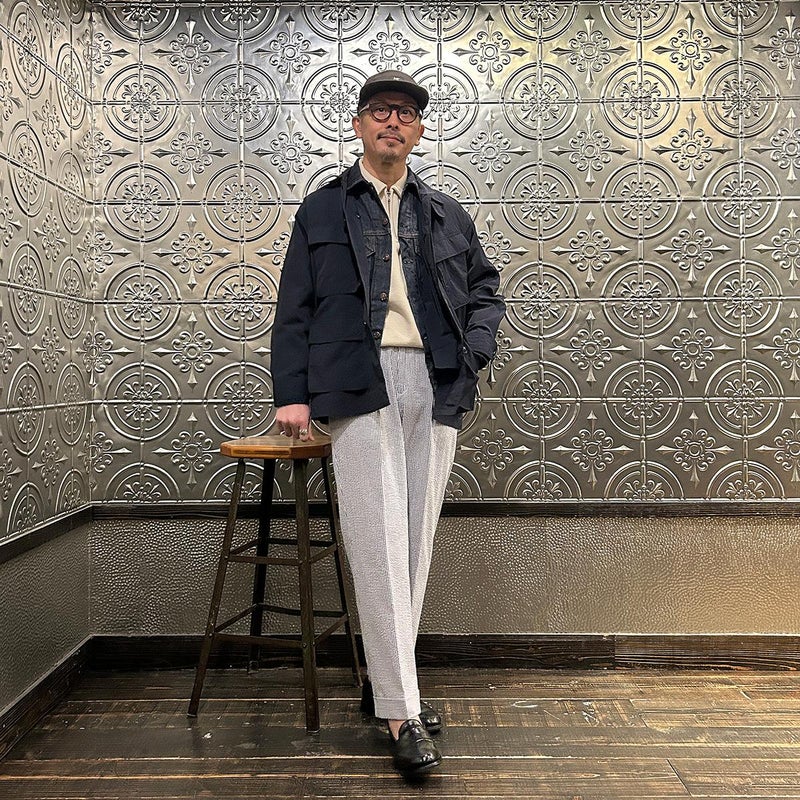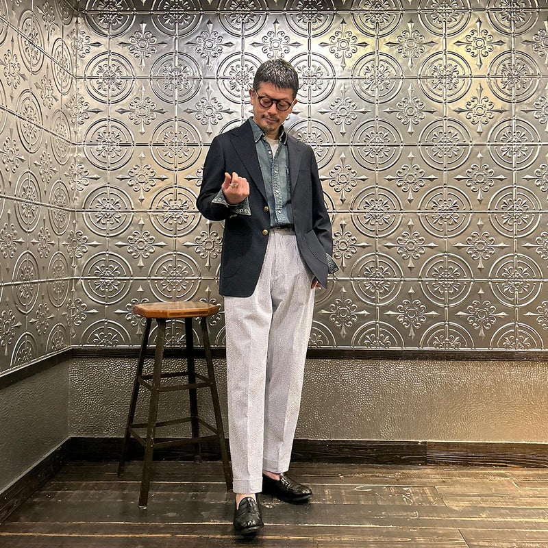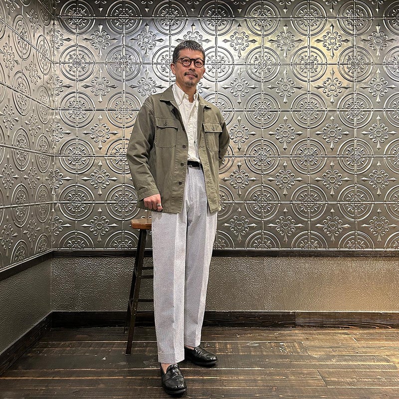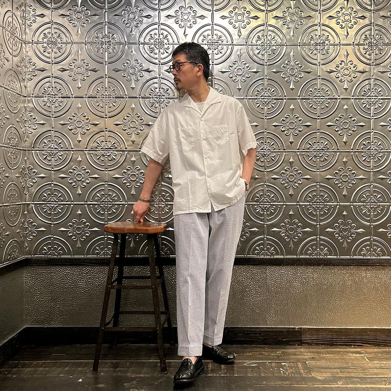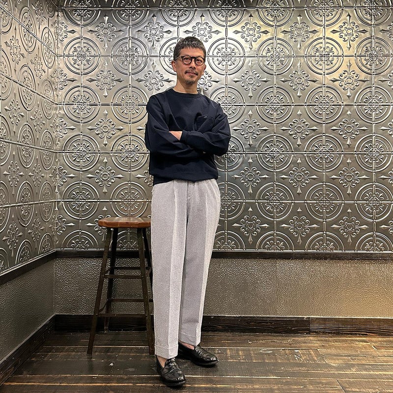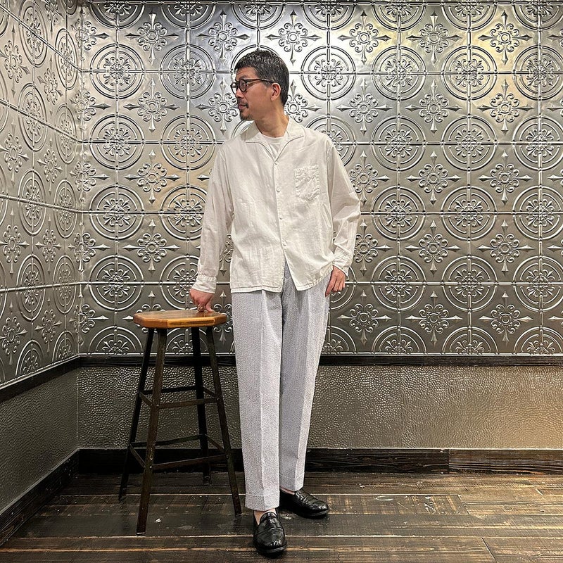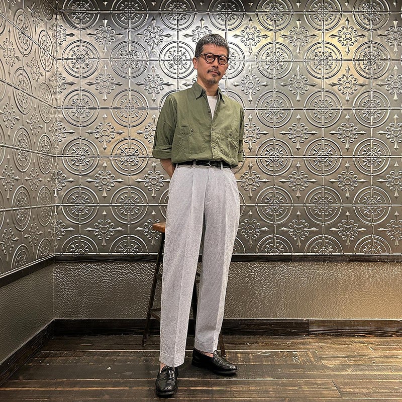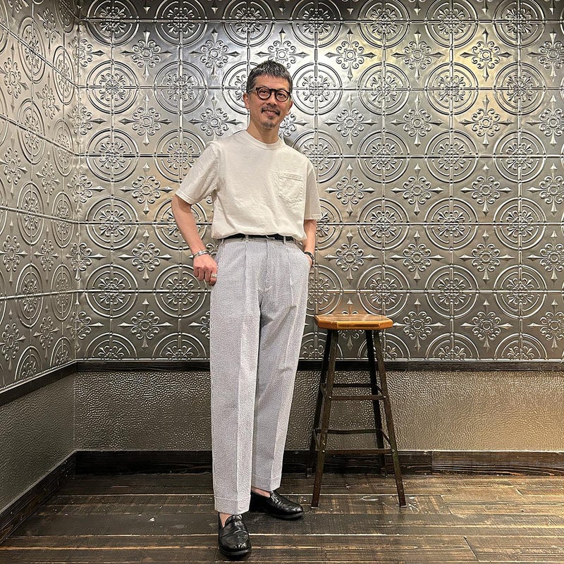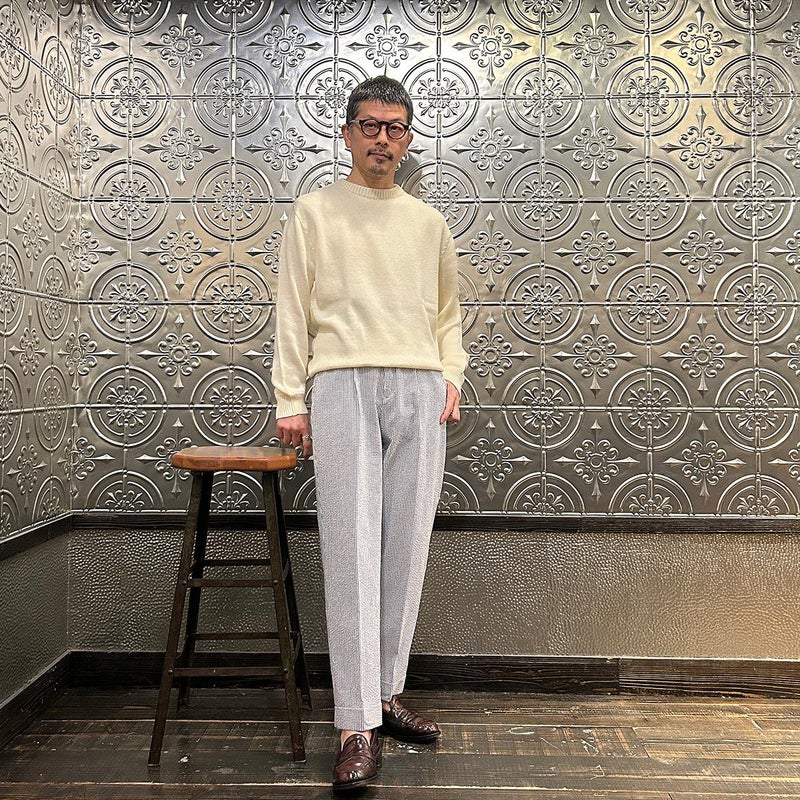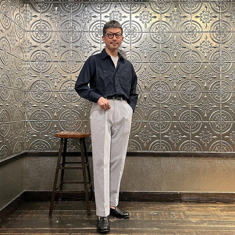 BARNSTORMER(バーンストーマー)の"BARRY" SEERSUCKER。当店がバーンストーマーに型から完全別注した「BARRY バリー」。某アメリカの有名ブランドのチノをベースにアレンジを加えて型から完全別注。フロントはカジュアルさを演出する為にアウトタック仕様でゆとりのある腰回りに。ボトムに向かって緩やかにテーパード。股上、ワタリ、裾幅まで細かい修正を何度も繰り返した渾身の一本。着用するスタイルを選ばない穿き易いシルエット。前立てはジップフロント、バックポケットは向かって左側がフラップ付きポケット。右側はフラップなし。アメリカのスラックス専業ブランドを彷彿とさせる紙のフラッシャーも別注のポイント。素材はメンズトラッドの春夏の装いには欠かせないコットンのシアサッカー素材。ドライタッチで生地の凹凸が肌への接地面を少なくする事から天然の機能素材として重宝される生地。夏でもショーツを穿かない方、汗をかいたら気兼ねなく自宅で洗濯したい方には最適な生地。裾は裾上げされていない未処理(フラシ)状態。着用時には裾上げが必要になります。 納品時にワンウォッシュしてあるので洗濯による大幅な縮みの心配はございません
