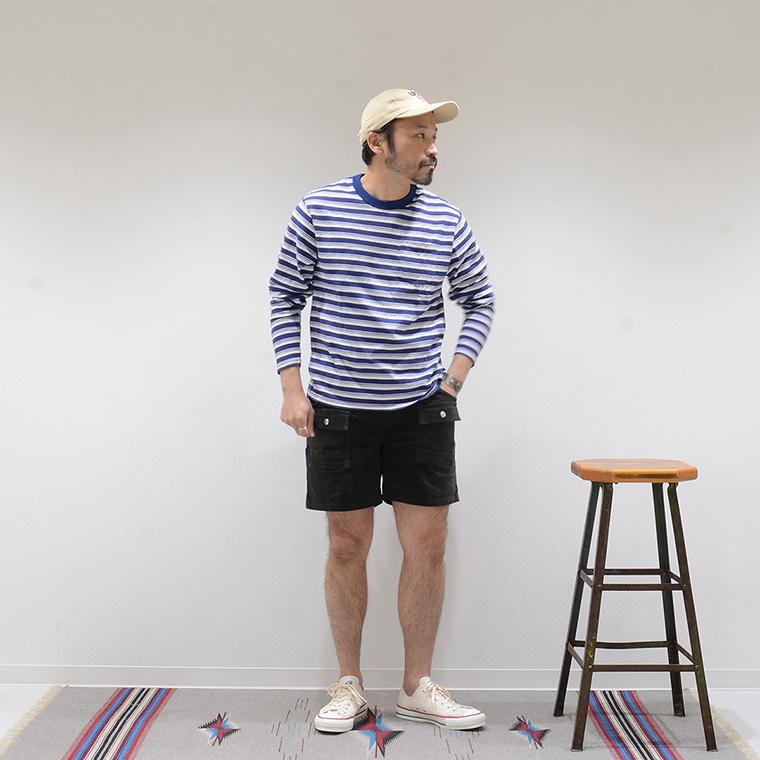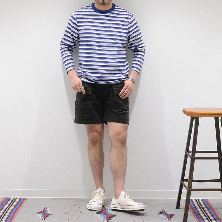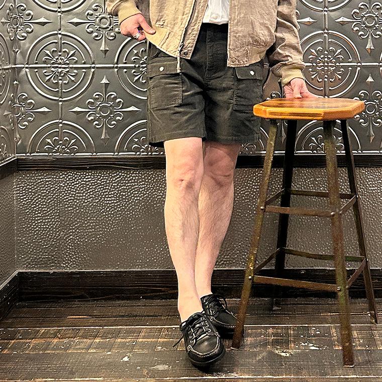 アメリカ発「FELCO(フェルコ)」のCORDUROY BUSH SHORT 21W STRETCH CORDUROY。細かい畝のコーデュロイを使用した、膝上丈のショーツ。70'sのオールドサーフスタイルをベースに、ブッシュパンツをモチーフにしたデザイン。フロントのポケットは、ポケットの上に更にポケットが付いたブッシュパンツらしいデザインで、バックはスナップボタン付きのフラップポケットが二つ付いています。横方向の伸縮性が高いストレッチコーデュロイを採用しており、ウエスト部分もゴムの仕様になっている為、非常に楽な履き心地でストレスフリーに穿いて頂けます。シンプルになる夏のスタイルのアクセントになってくれるアイテムです。